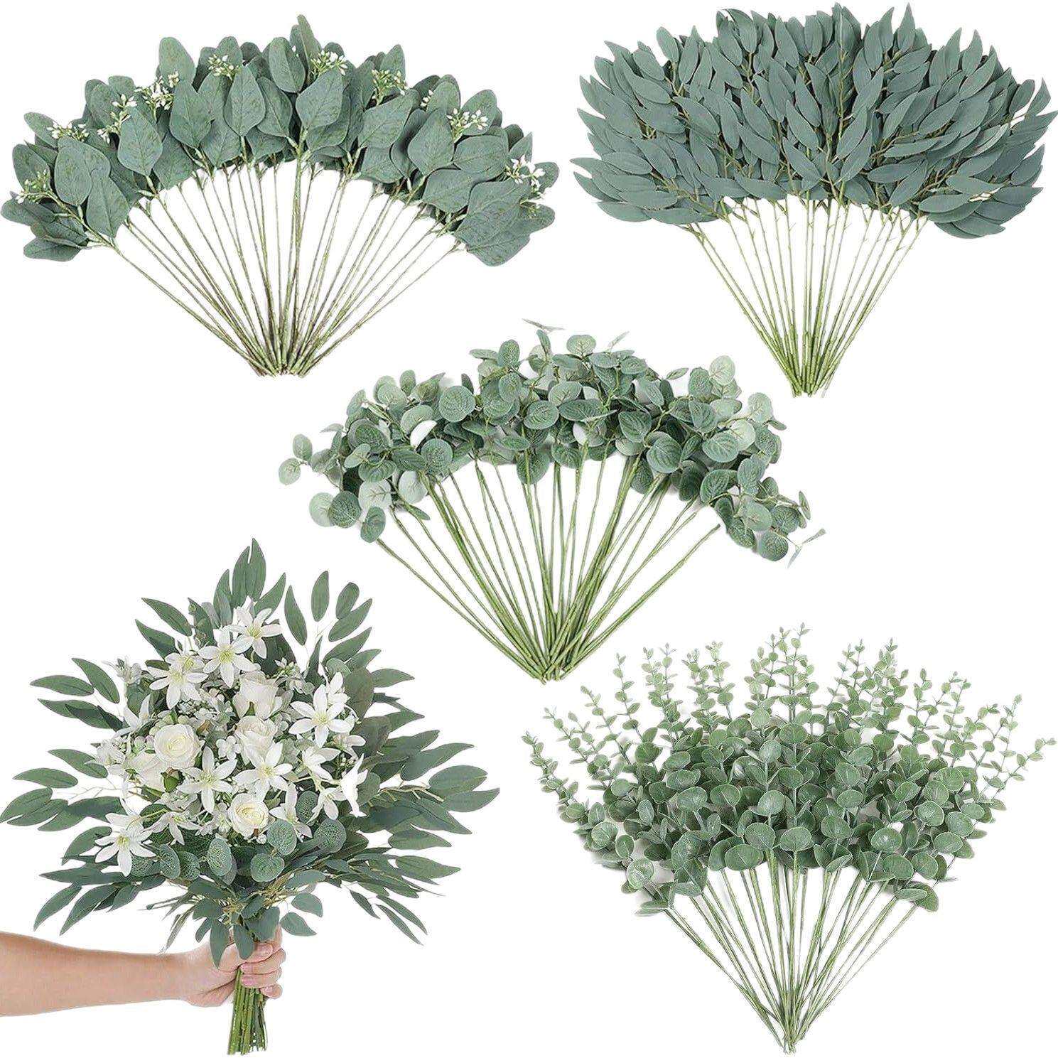 📚 仿真金色尤加利人造桉树叶跨境绿植节日圣诞节婚礼居家假花插花婚