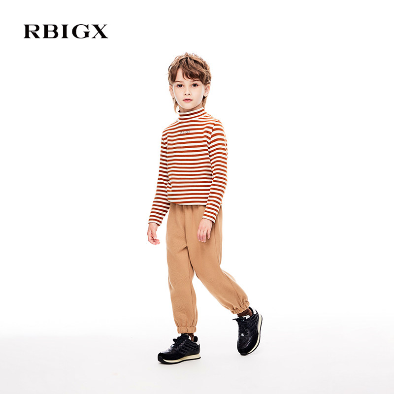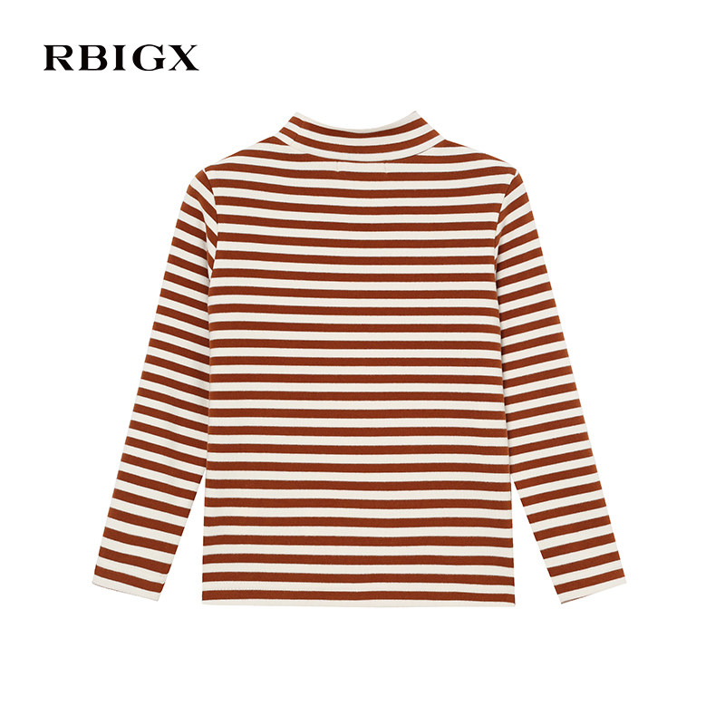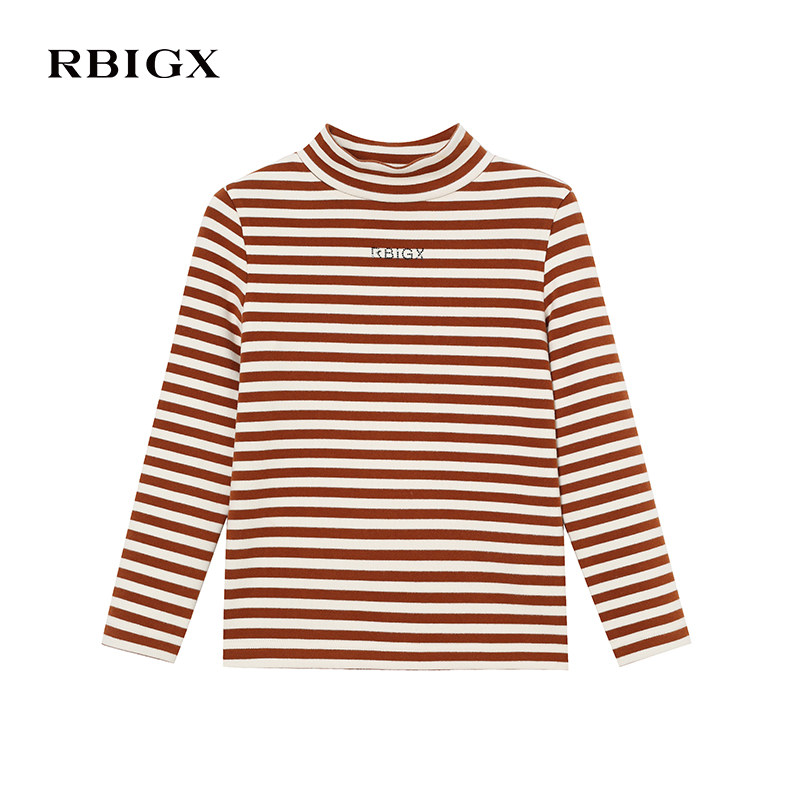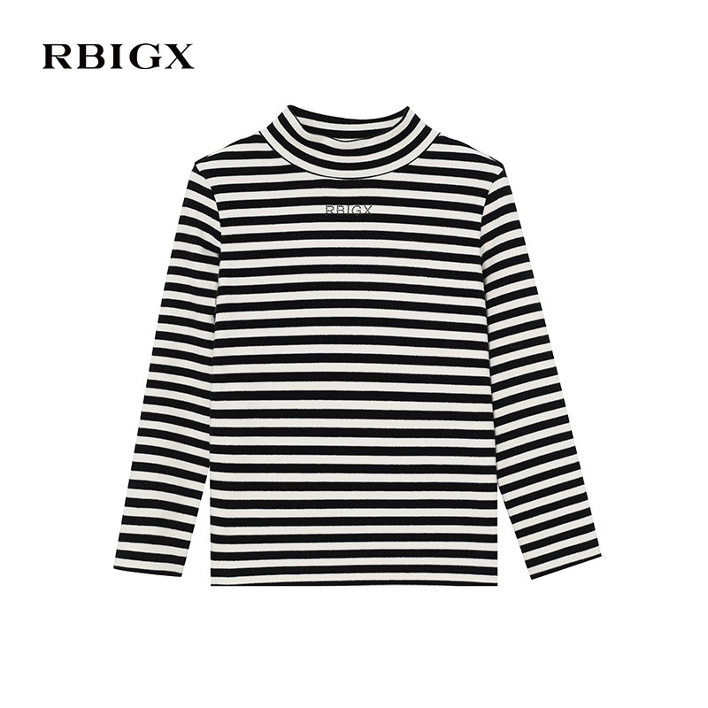 📚 RBIGX瑞比克童装冬季新款百搭潮流韩版贵族洋气条纹撞色半高领T恤