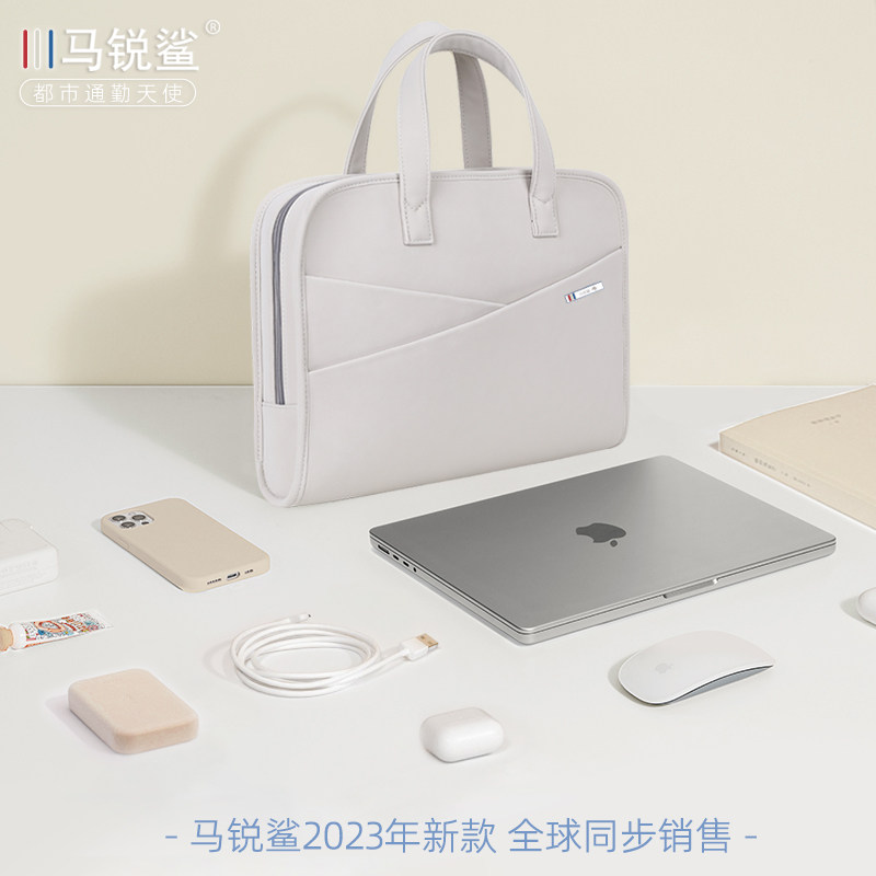 📚 马锐鲨正品简约皮质手提电脑包公文包单肩包14/15/16/17寸电脑包