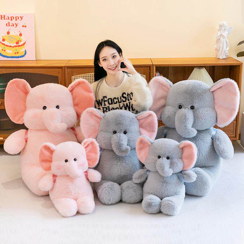 📚 可爱背包大象毛绒玩具公仔粉灰情侣一对小书包小象布偶生日礼物