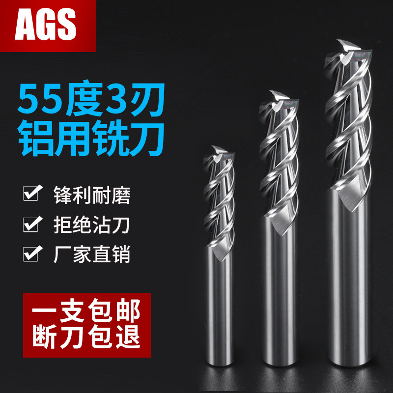 📚 3刃55度铝用铣刀钨钢合金铝合金专用高光加长立铣刀CNC数控刀具