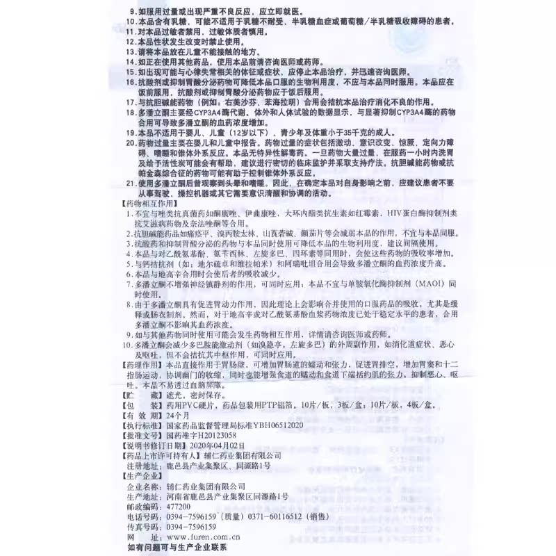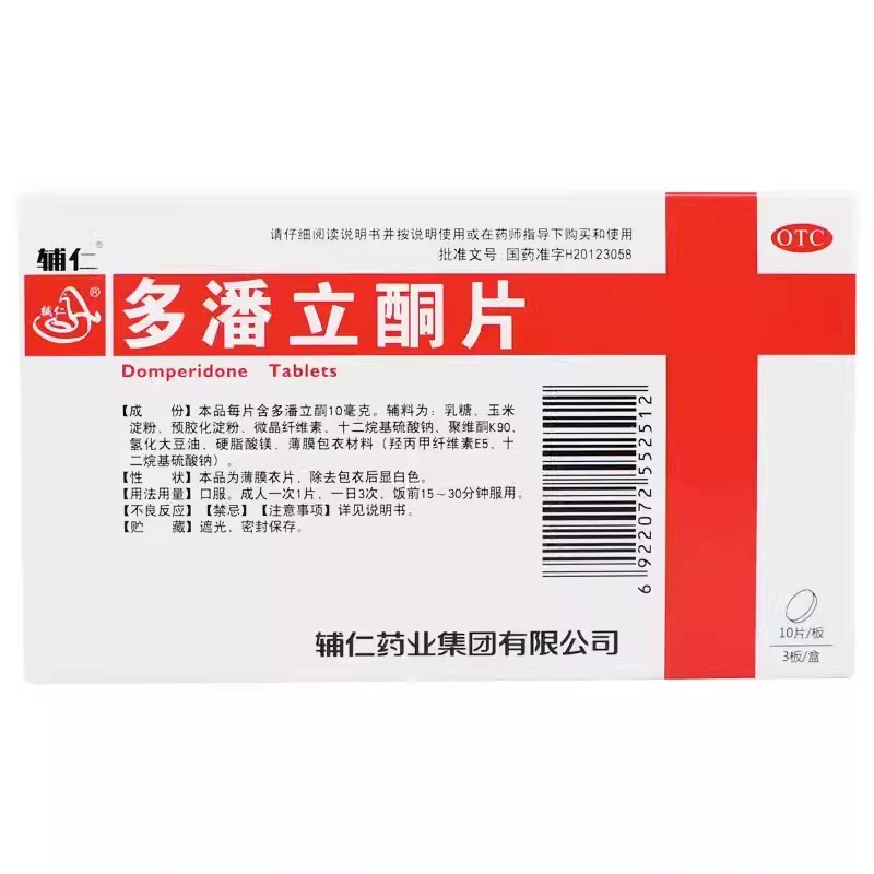 📚 辅仁 多潘立酮片30片/盒适用与消化不良腹胀恶心呕吐腹部胀痛嗳气
