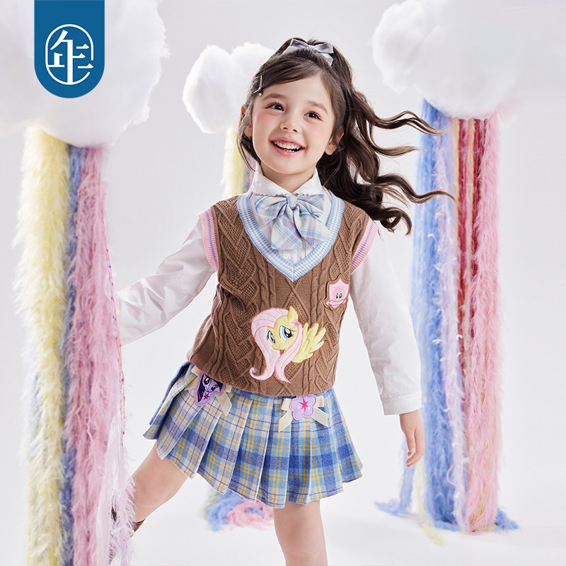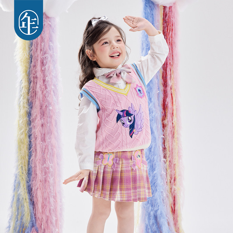 📚 小马宝莉联名年衣童装针织马甲冬季新款卡通学院风女童儿童毛衣