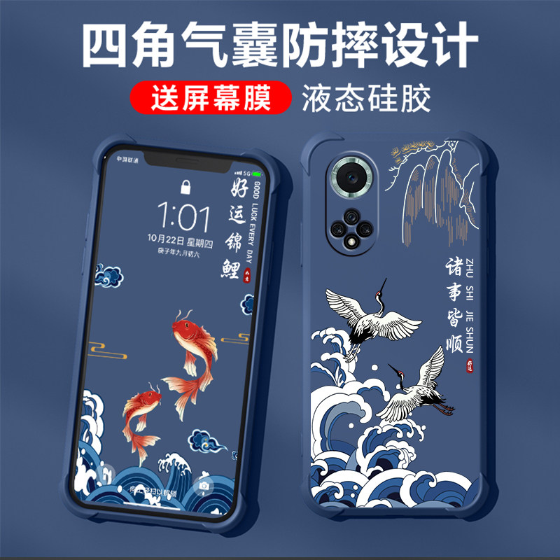 📚 好运莲莲华为nova9手机壳新款nova9pro四角气囊防摔nova9se保护套nova9z液态硅胶全包软壳男女潮超薄外壳国风
