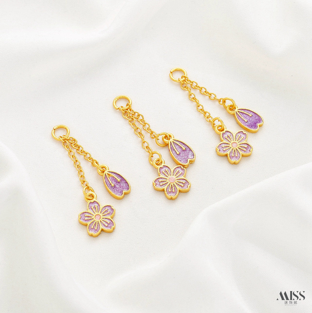 📚 沙金强保色平安喜乐葫芦蝴蝶铃兰花朵流苏吊坠diy尾链吊饰品配件