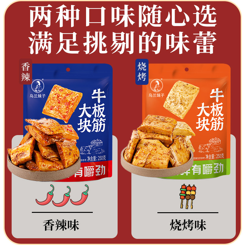 📚 香辣牛板筋大片内蒙古特产零食即食大块手撕牛板筋烧烤独立小包装
