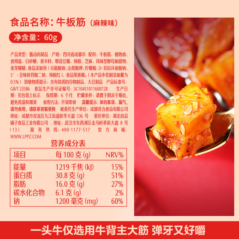📚 【99元任选10件】良品铺子牛板筋麻辣味60g袋装休闲零食