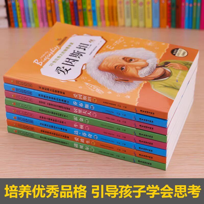 📚 爱因斯坦传名人传记全8册小学生必读的世界一生的世界名著传霍金牛顿爱迪生达芬奇诺贝尔传居里夫人传课外书籍故事经典文学乔布斯