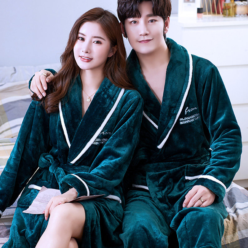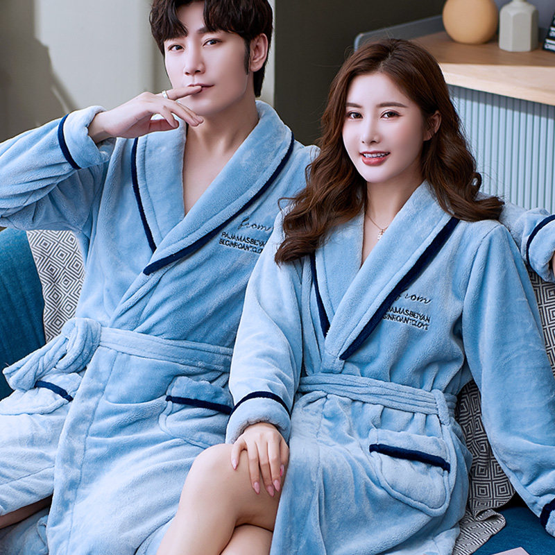 📚 情侣睡袍女秋冬季加厚珊瑚绒睡衣加绒法兰绒浴袍长款家居服男大码