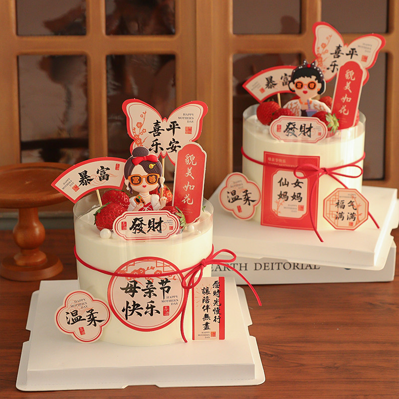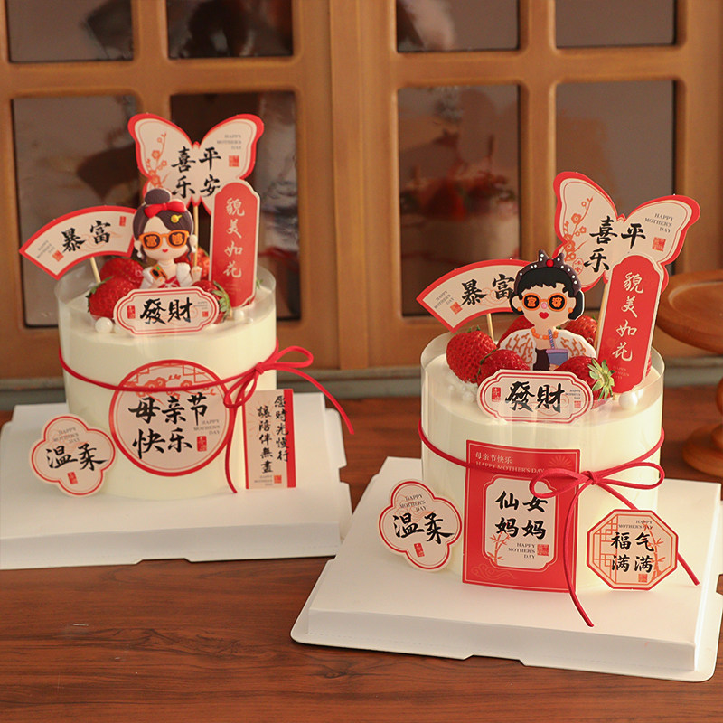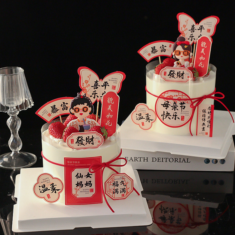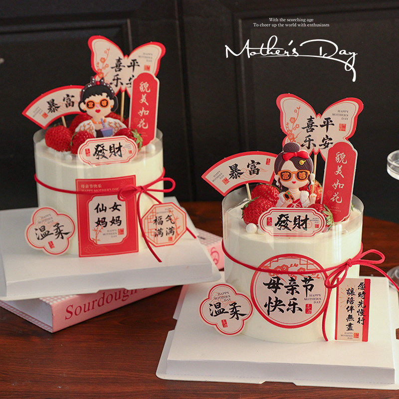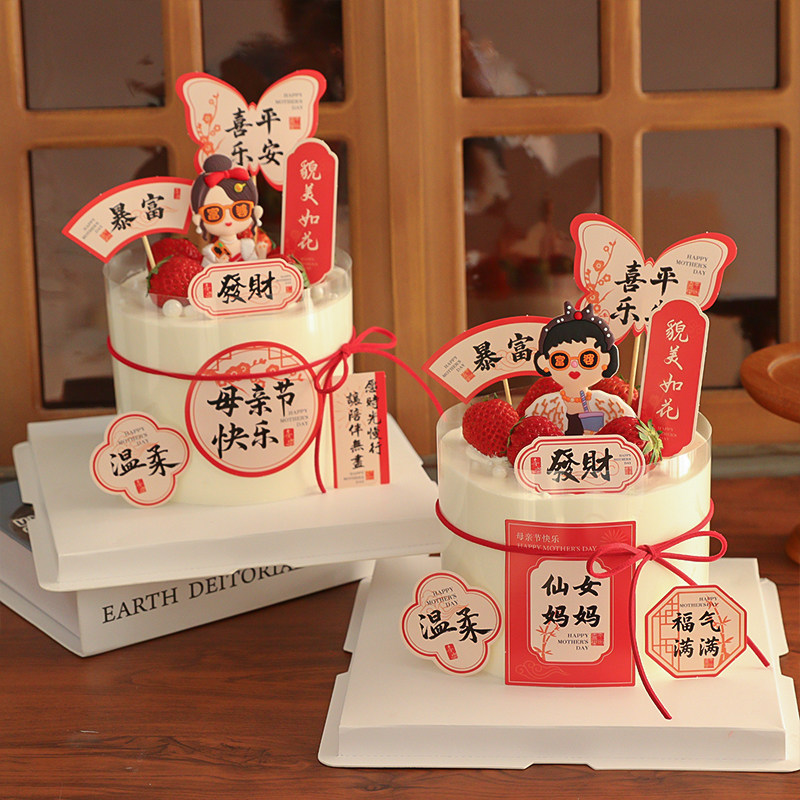 📚 2025母亲节蛋糕装饰福气满满貌美如花插牌软胶富婆妈妈装扮摆件