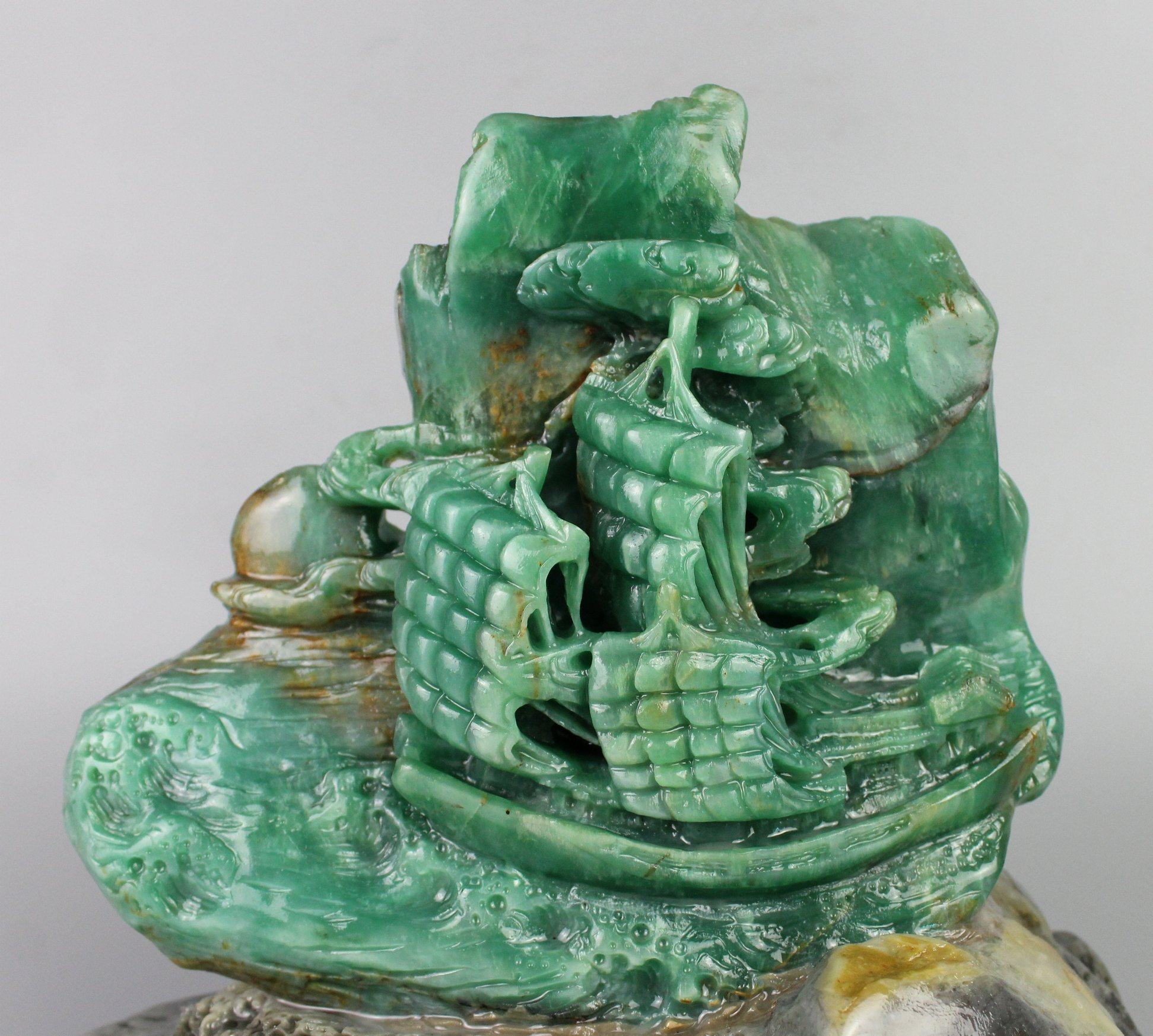 📚 一帆风顺船四川翡翠新绿全天然青田石雕刻摆件出入平安大发展直销