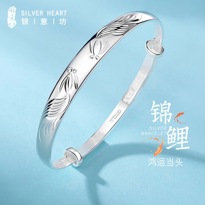 📚 鱼银手镯妈妈款女9999纯银实心新款银镯子生日新年本命年女士礼物