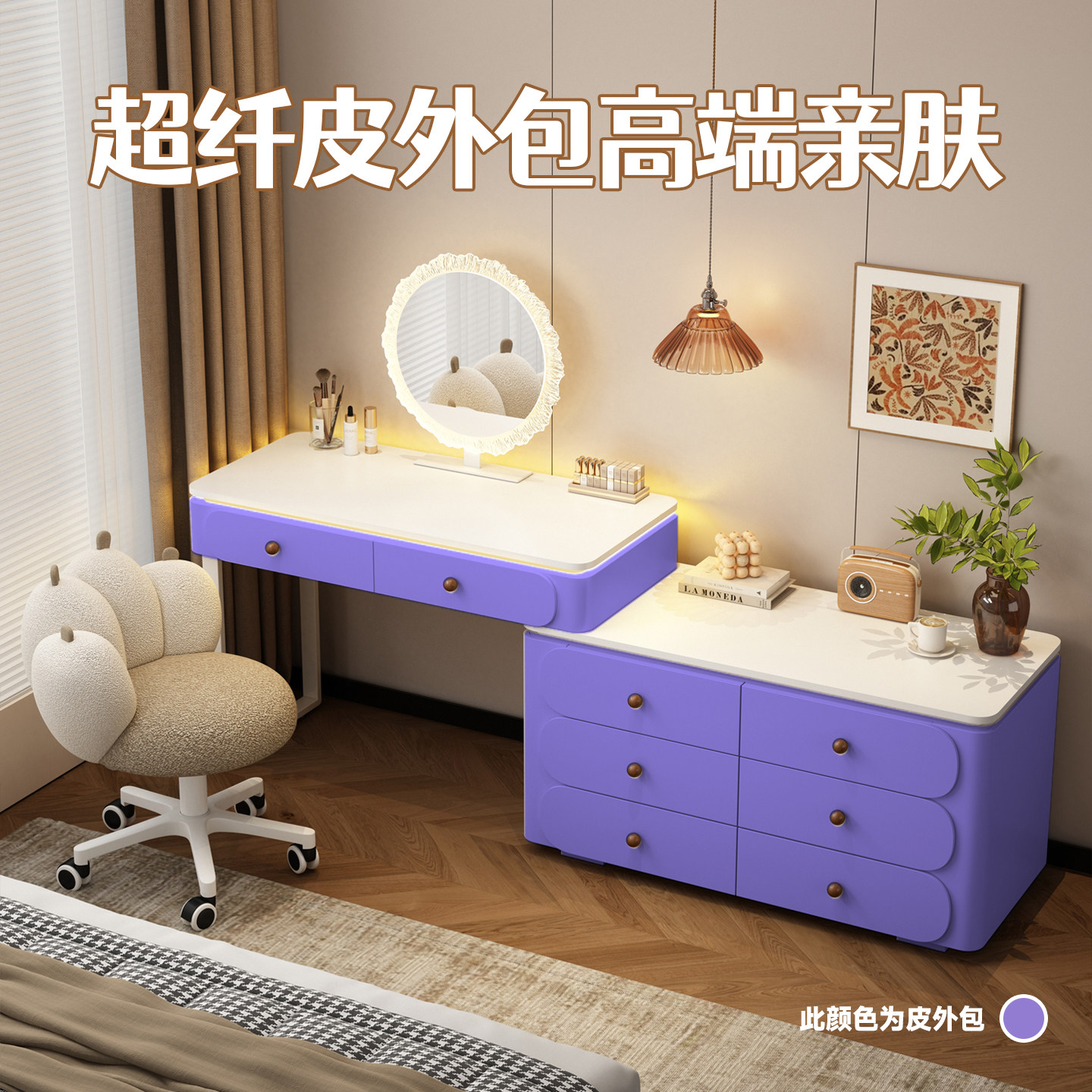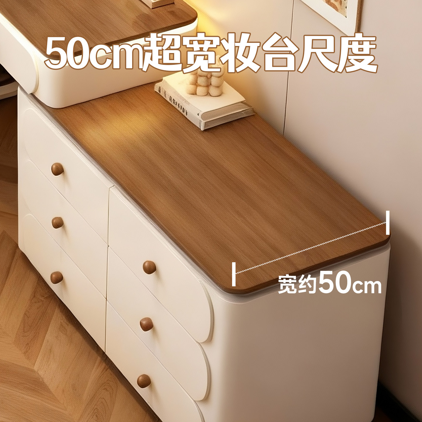 📚 50cm中古风实木梳妆台卧室现代简约加宽床尾高级感化妆桌斗柜一体