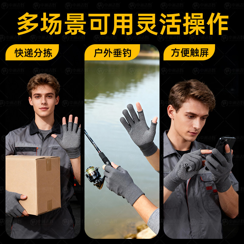 📚 劳保手套断指手套干活开车快递男女防磨搬货分拣司机打包露趾尼龙