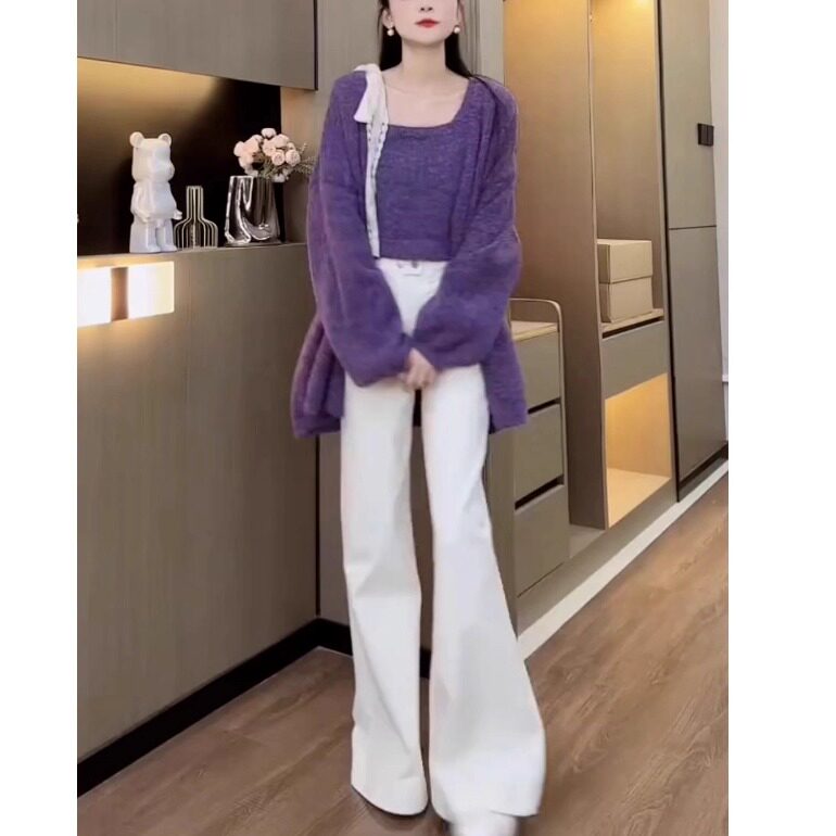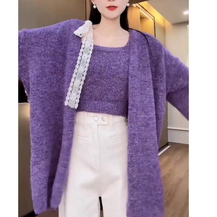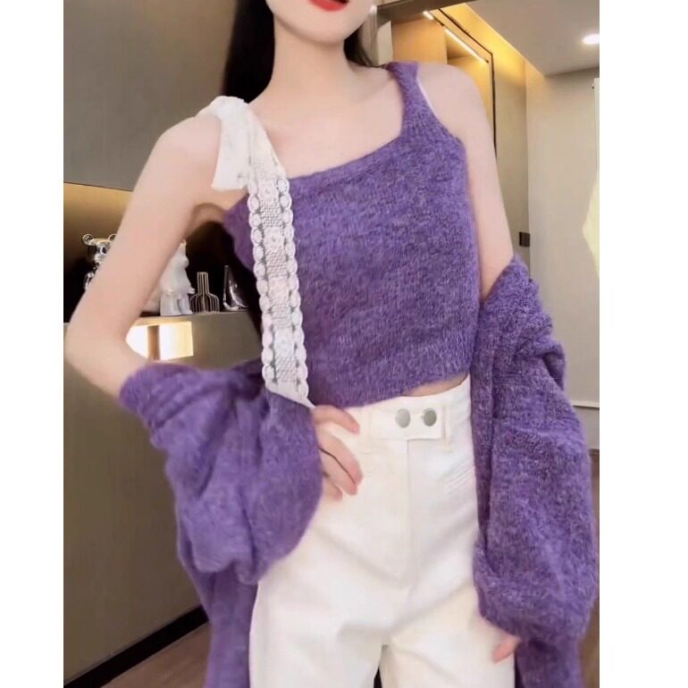 📚 韩系早秋穿搭秋冬女吊带开衫两件套2025针织衫外套温柔软糯风毛衣