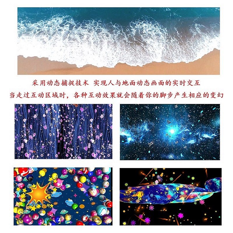 📚 地面互动沉浸全息投影红外感应硬件融合器四折幕户外走廊画面融合