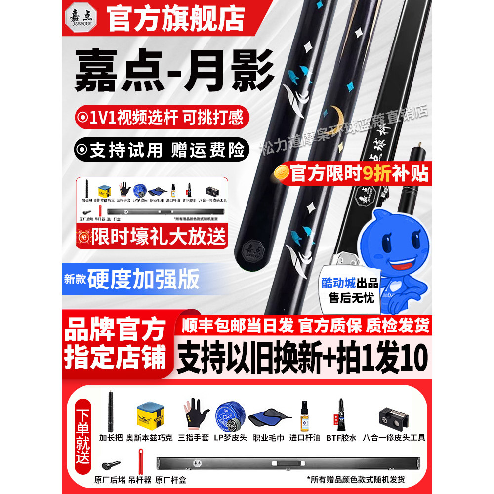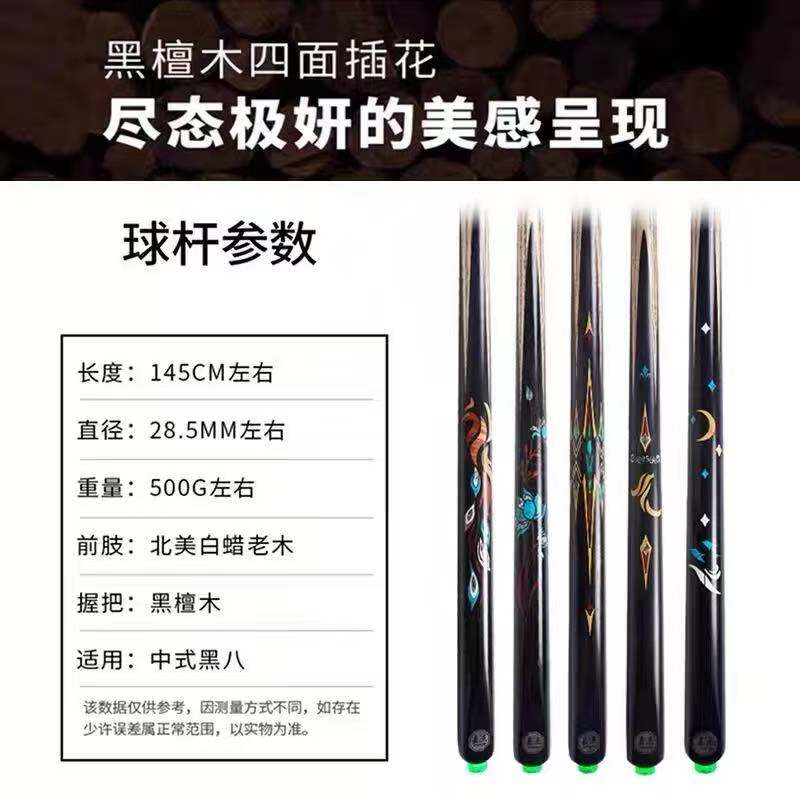 📚 嘉点月影腾飞凤舞莲蔓台球杆小头中式八球杆通杆桌球杆九球斯诺克