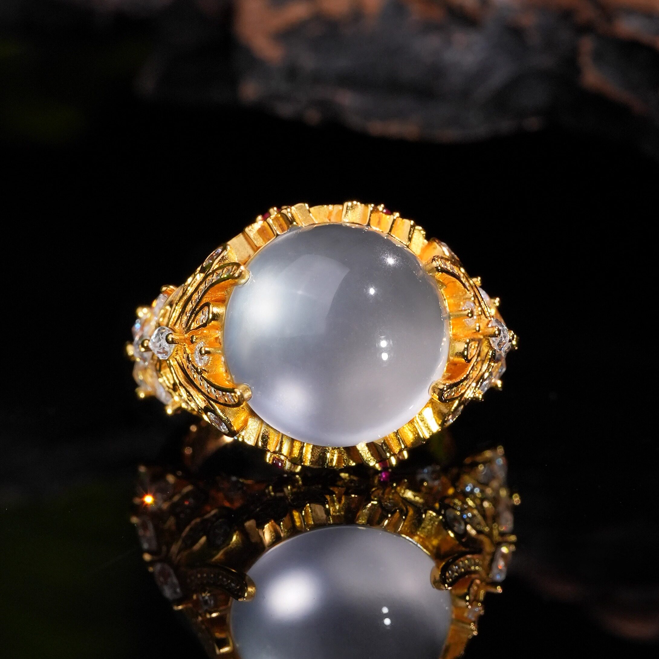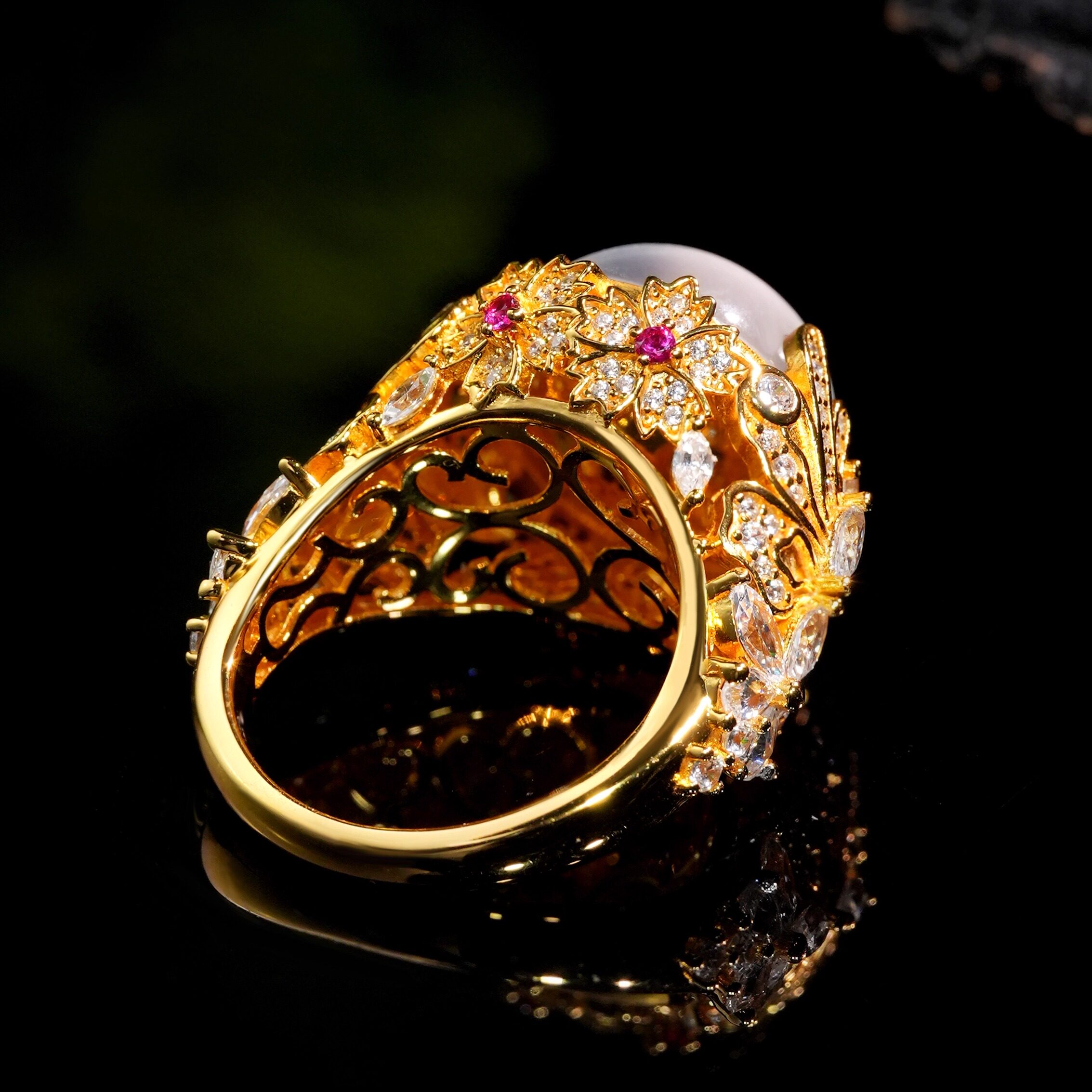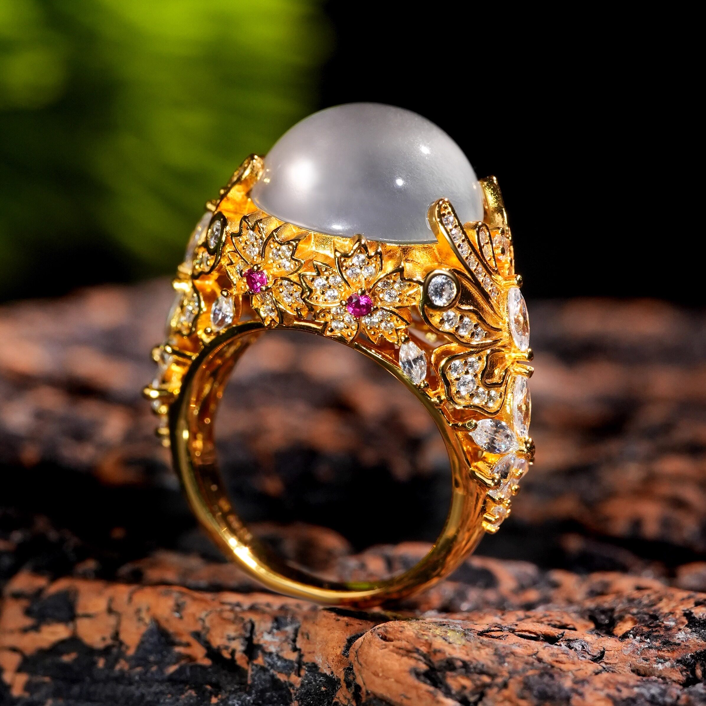 📚 VISING珠宝《花蝶共舞》黄金色天然水沫子石英质玉鸽子蛋戒指925