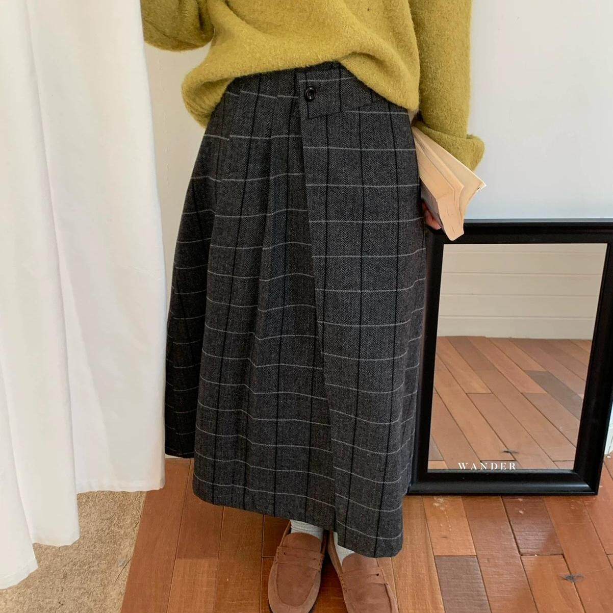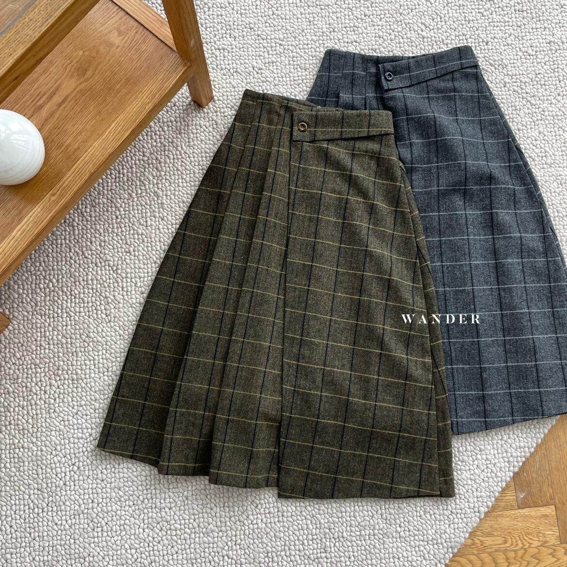 📚 韩货wander2025秋季新款设计款100%纯棉翻折腰头格子半裙H31160