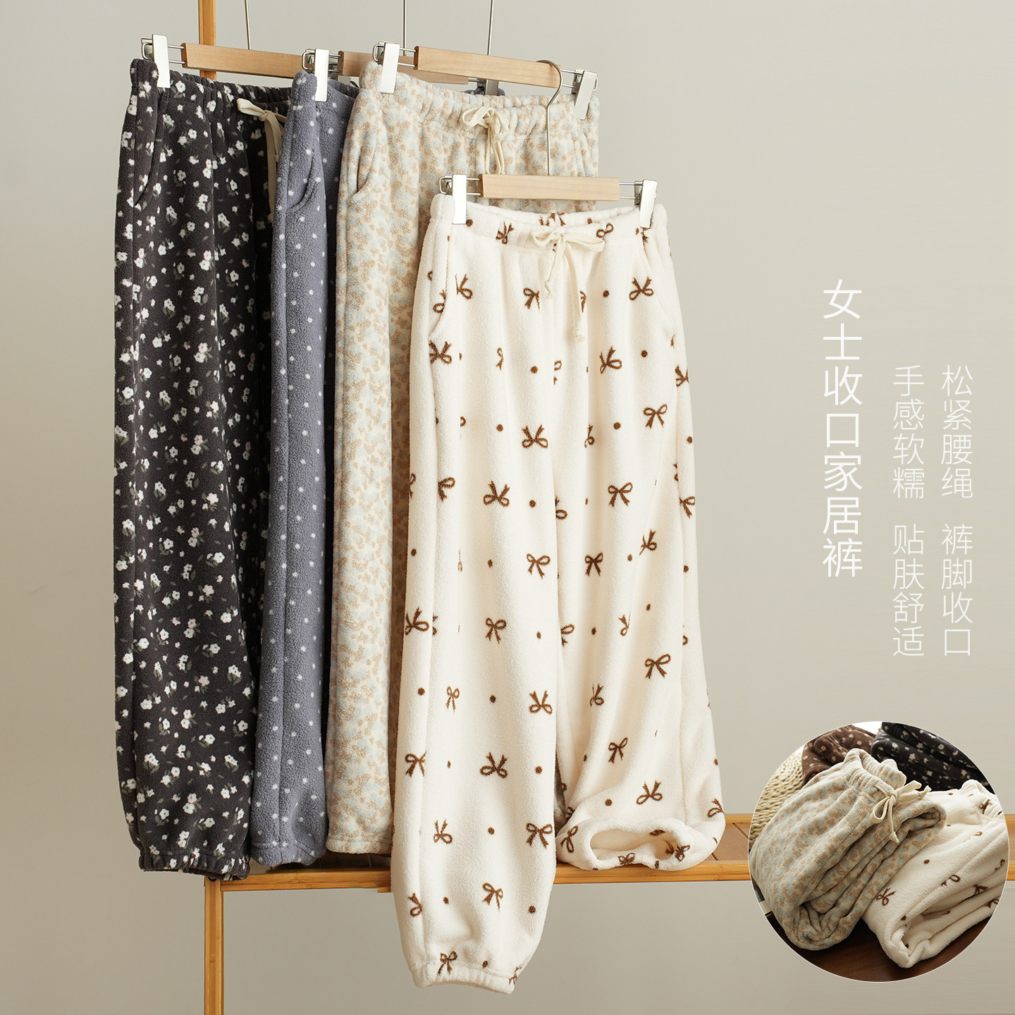 📚 300克 女士雪粒绒家居裤睡裤 家居服 厚实保暖收口裤 秋冬款 女装