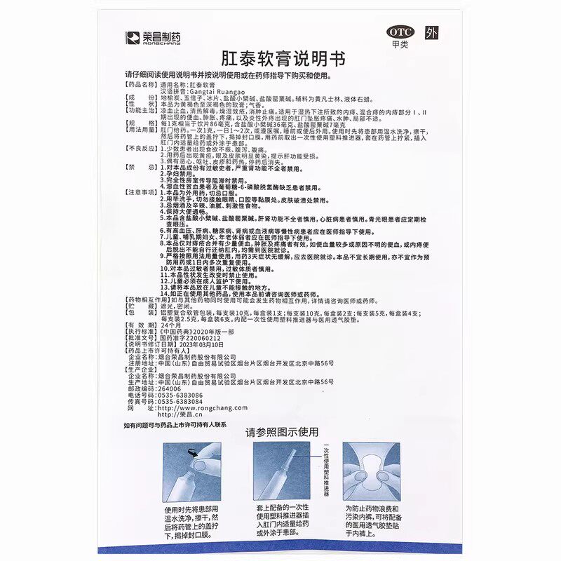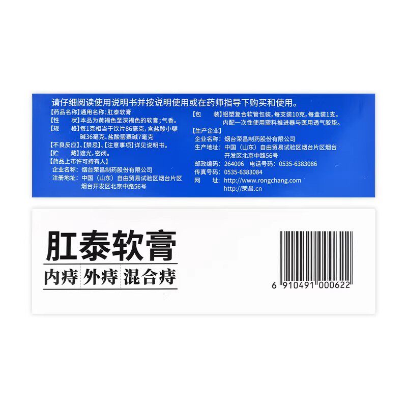 📚 荣昌肛泰软膏痔疮药10g清热解毒消肿止痛内痔外痔混合痔便血