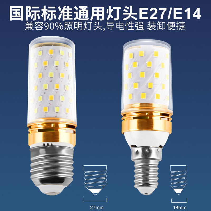 📚 led灯泡玉米灯e27e14大小螺口超亮16W家用节能吊灯三色变光12W