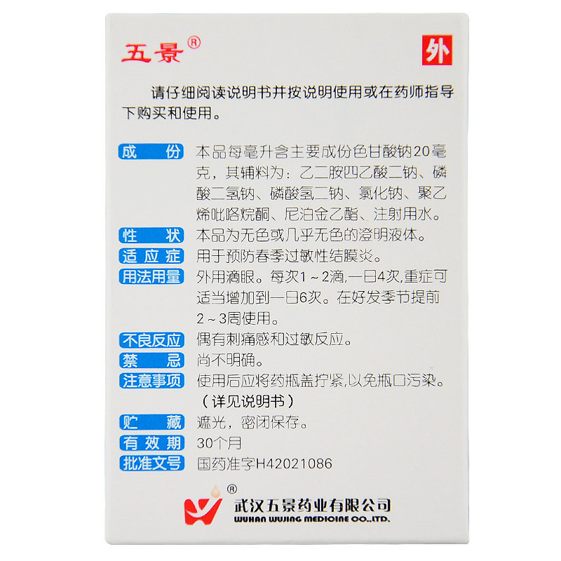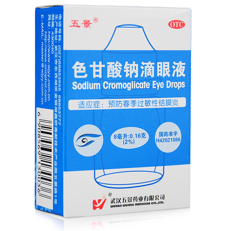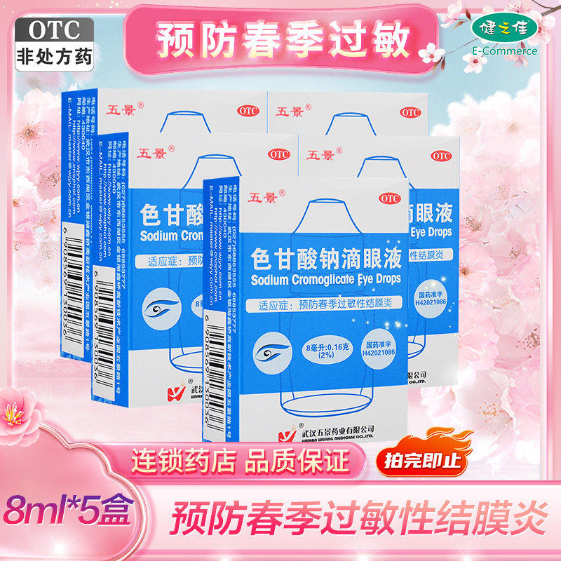 📚 五景色甘酸钠滴眼液8ml/盒预防春季过敏性结膜炎眼药水正品旗舰店
