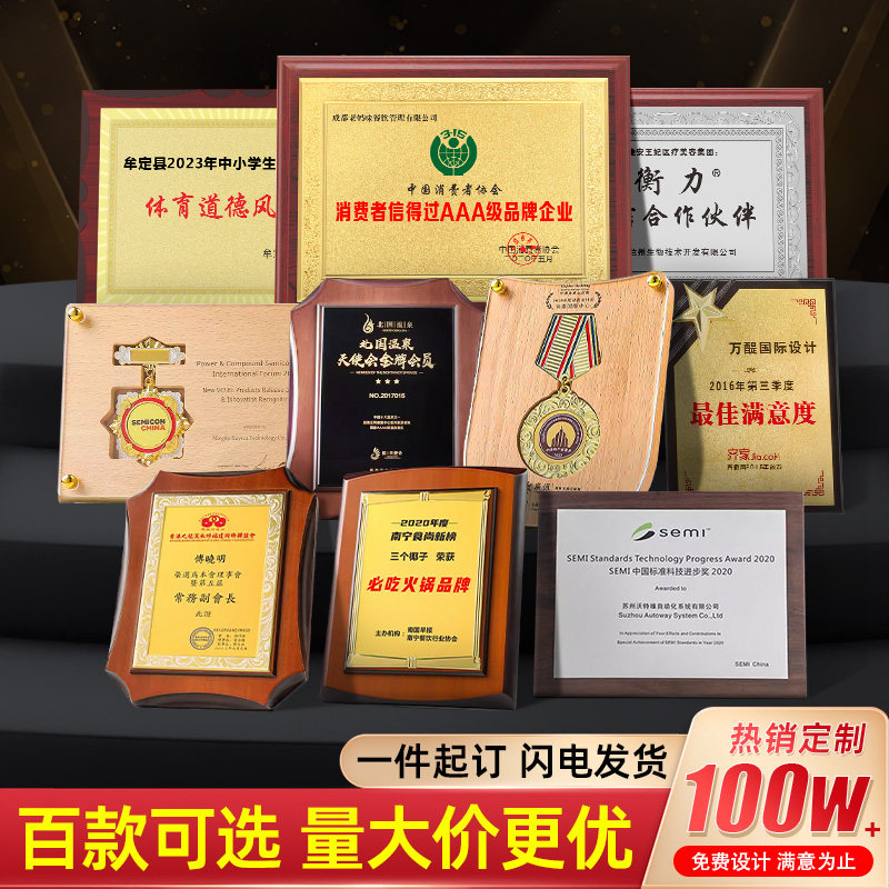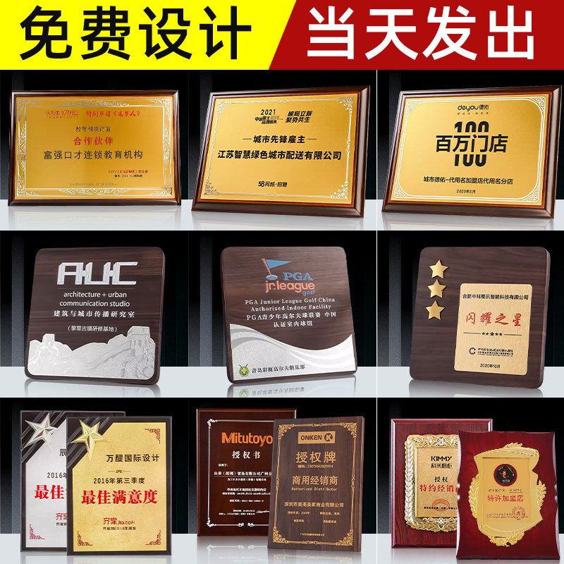 📚 金箔奖牌定制定做授权牌证书荣誉牌木质牌匾制作金属挂牌木托铜牌