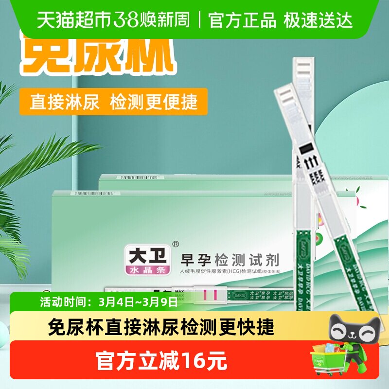 📚 大卫检测怀孕试纸条验孕棒早早孕hcg精准高精度10支/盒