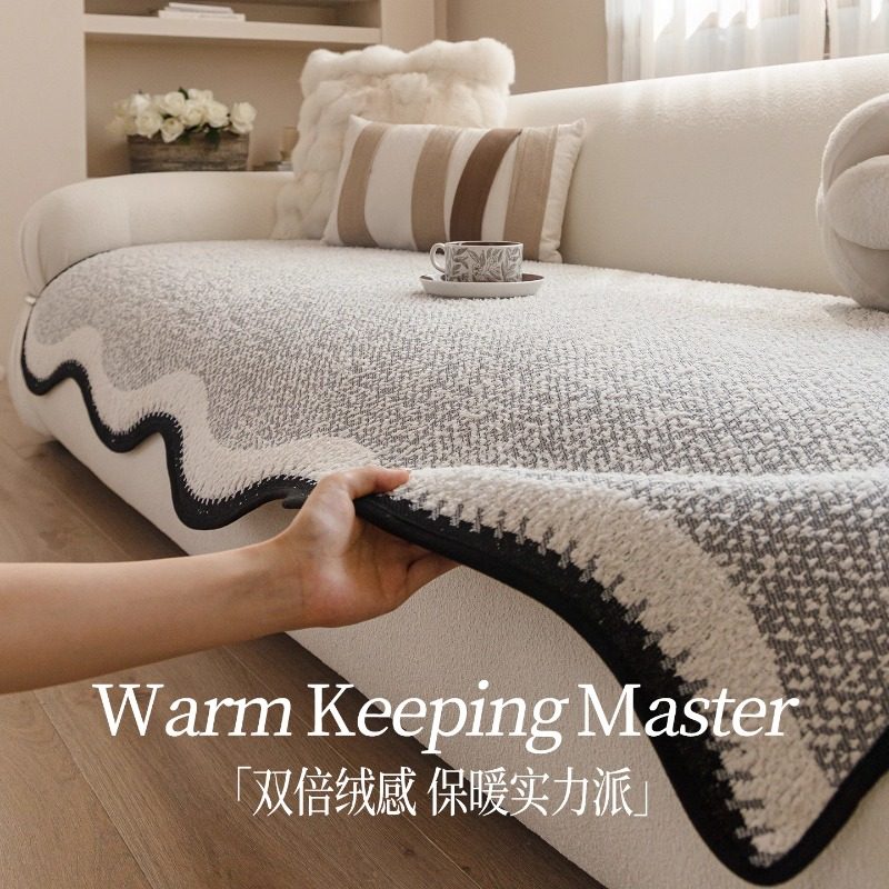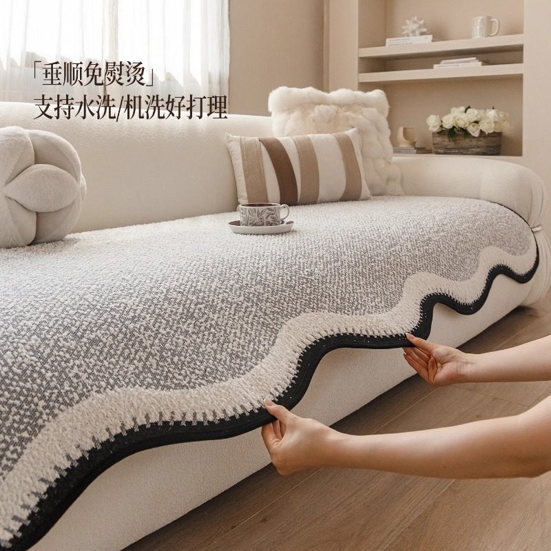 📚 德国异形毛绒沙发垫秋冬季高级感皮沙发坐垫固定防滑加厚沙发盖布