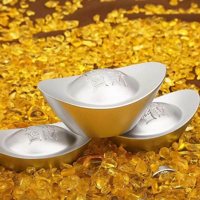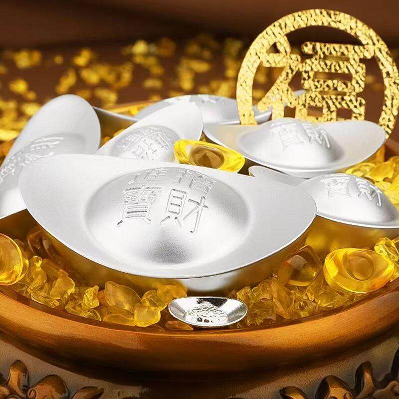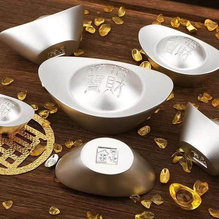 📚 仿真银元宝摆件实心银锭摆设中国风招财装饰品开业乔迁元宝礼品