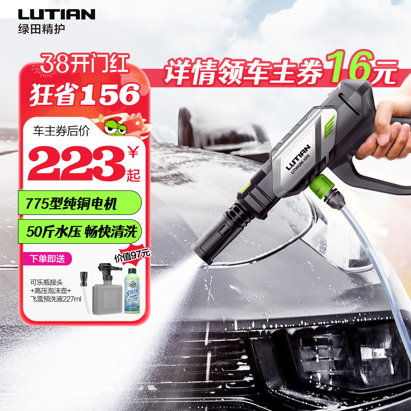 59¥ MF278 S1szUKJvTwT¥ https://m.tb.cn/h.7Aq28Wh 绿田无线洗车机家用锂电池高压水枪手持便捷充电刷车水泵清洗神器 --------------------- 【原售价】579元 【现售价】379元。