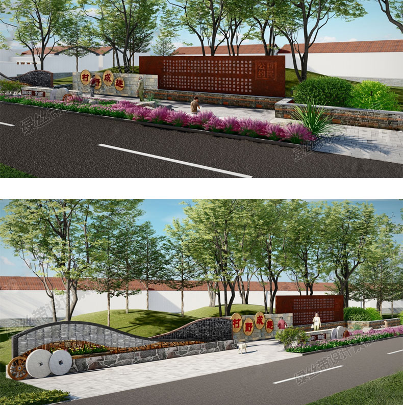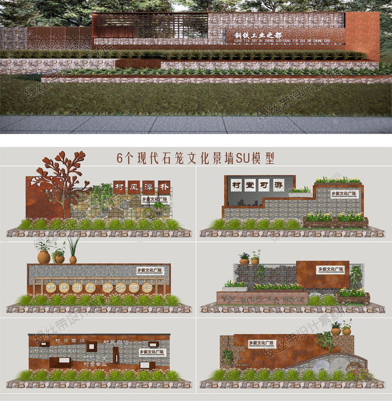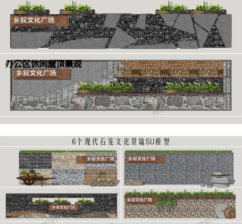 📚 毛石矮墙cad石笼网民俗文化景墙围墙乡村公园民宿挡土墙su模型