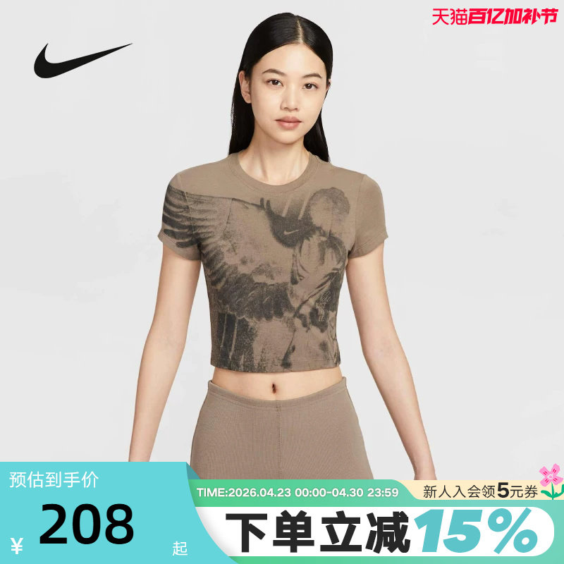 📚 Nike耐克女子夏新款休闲印花紧身透气露脐短袖运动T恤 HV5001-214