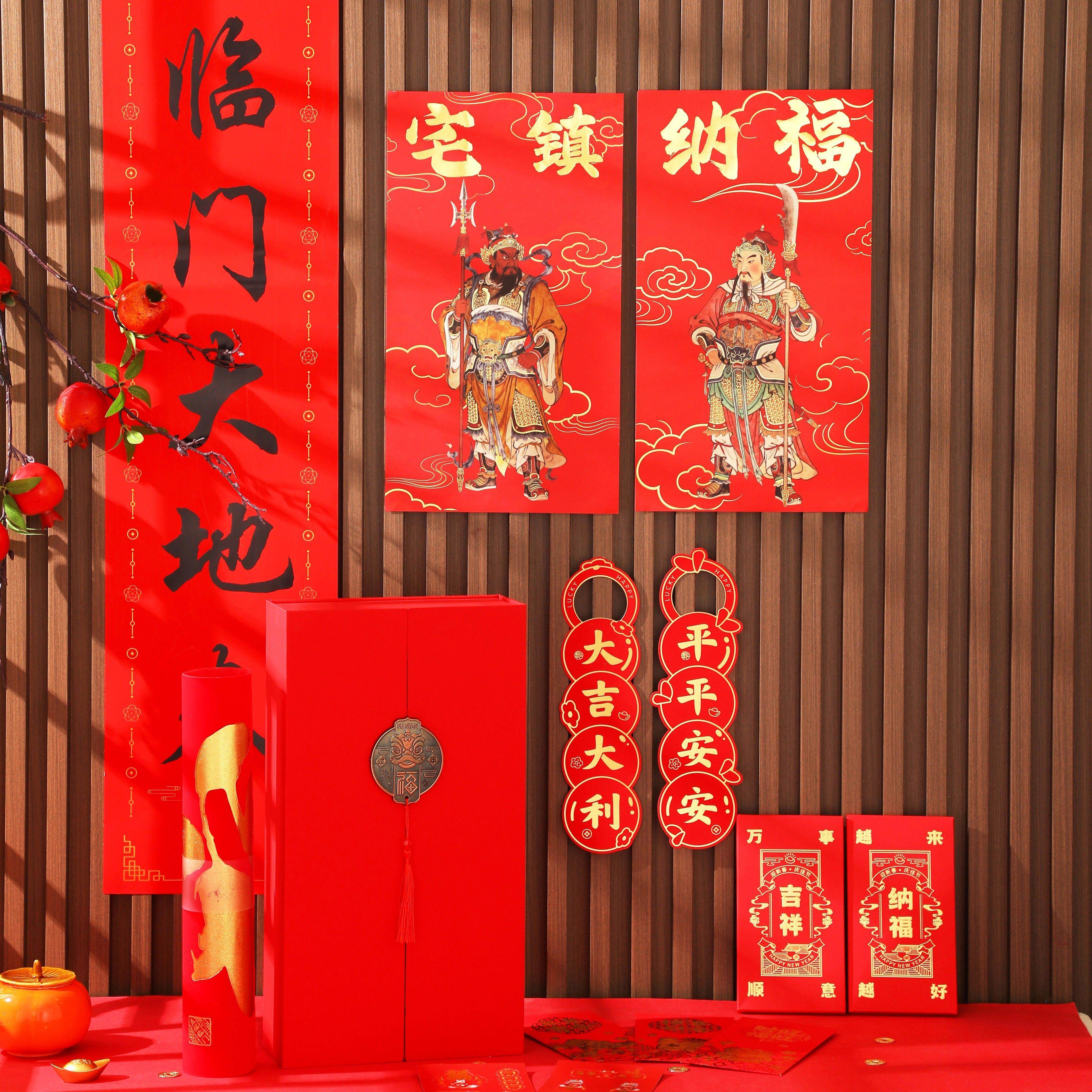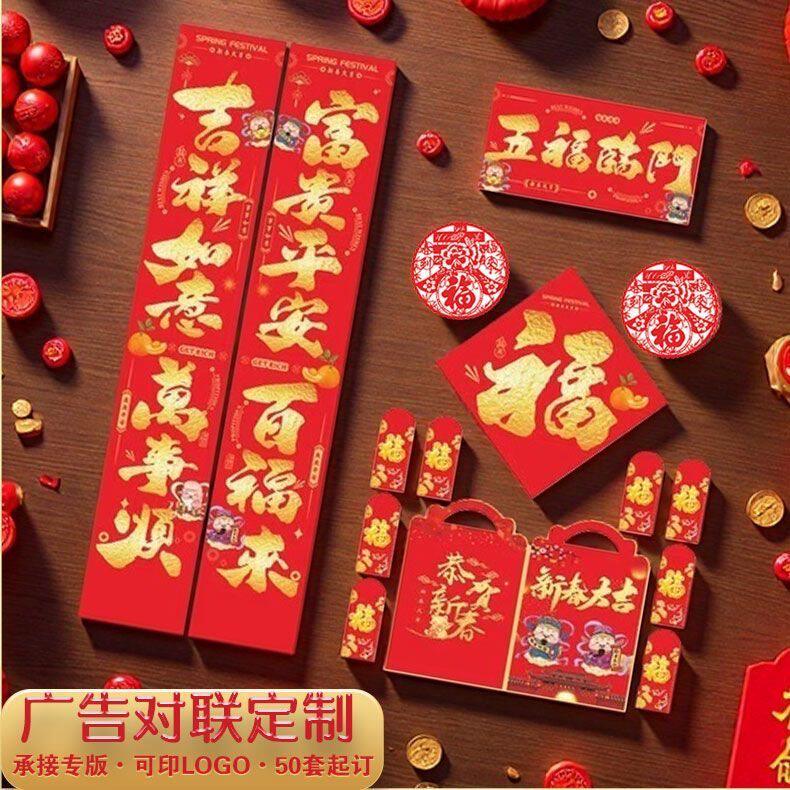 📚 个性2026马年丝绸对联植绒背胶定制logo银行广告春联礼盒福字门联