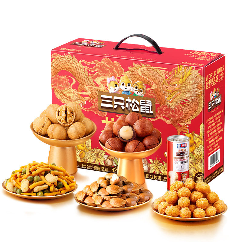 📚 三只松鼠年货龙跃零食礼1035g/8件坚果炒货大礼包礼盒夏威夷果