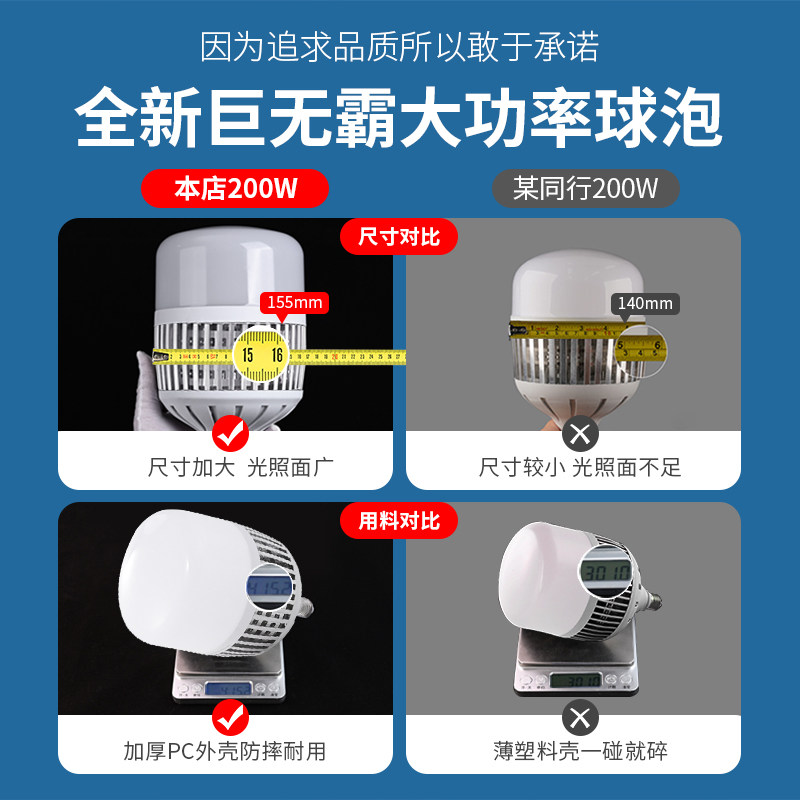📚 大功率灯泡螺口led灯家用e27超亮节能强光工地厂房车间照明灯100W