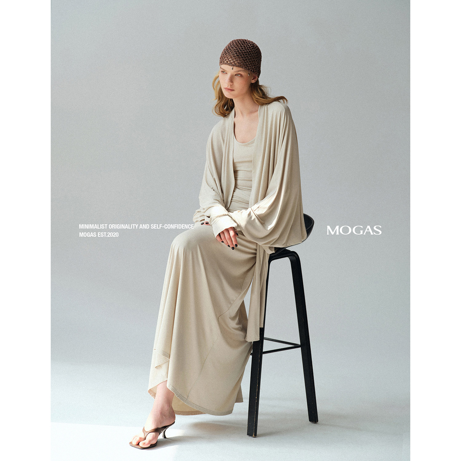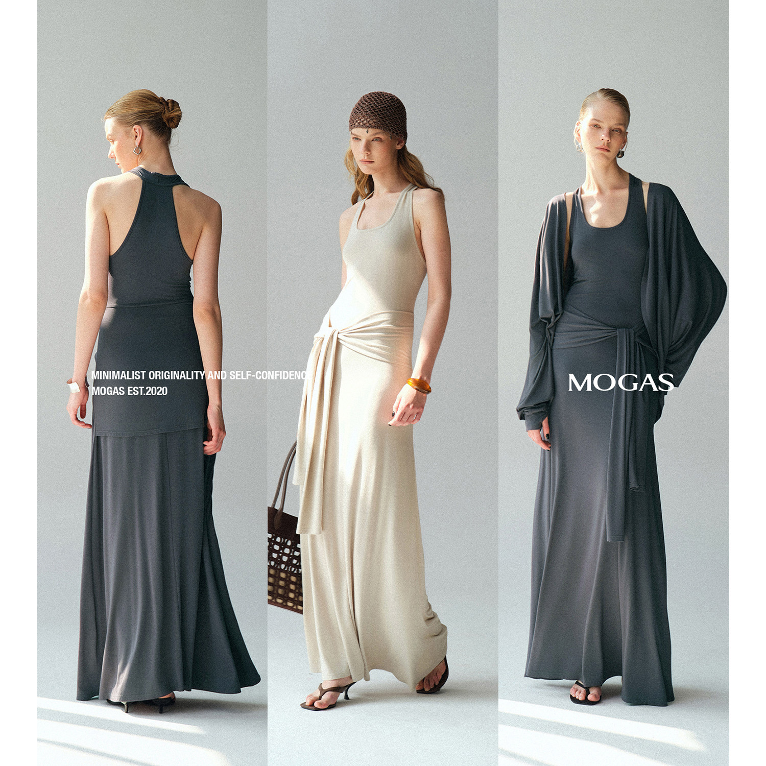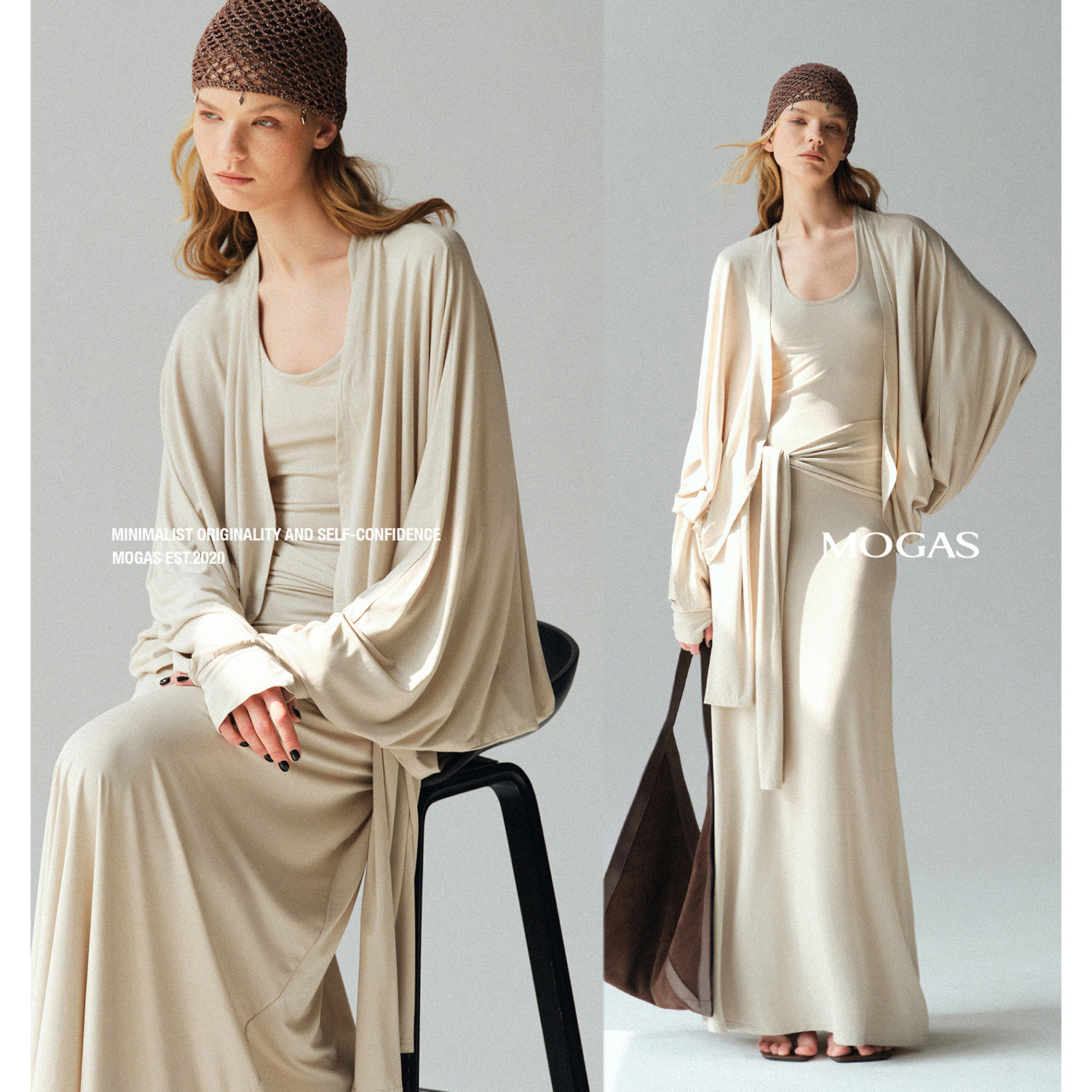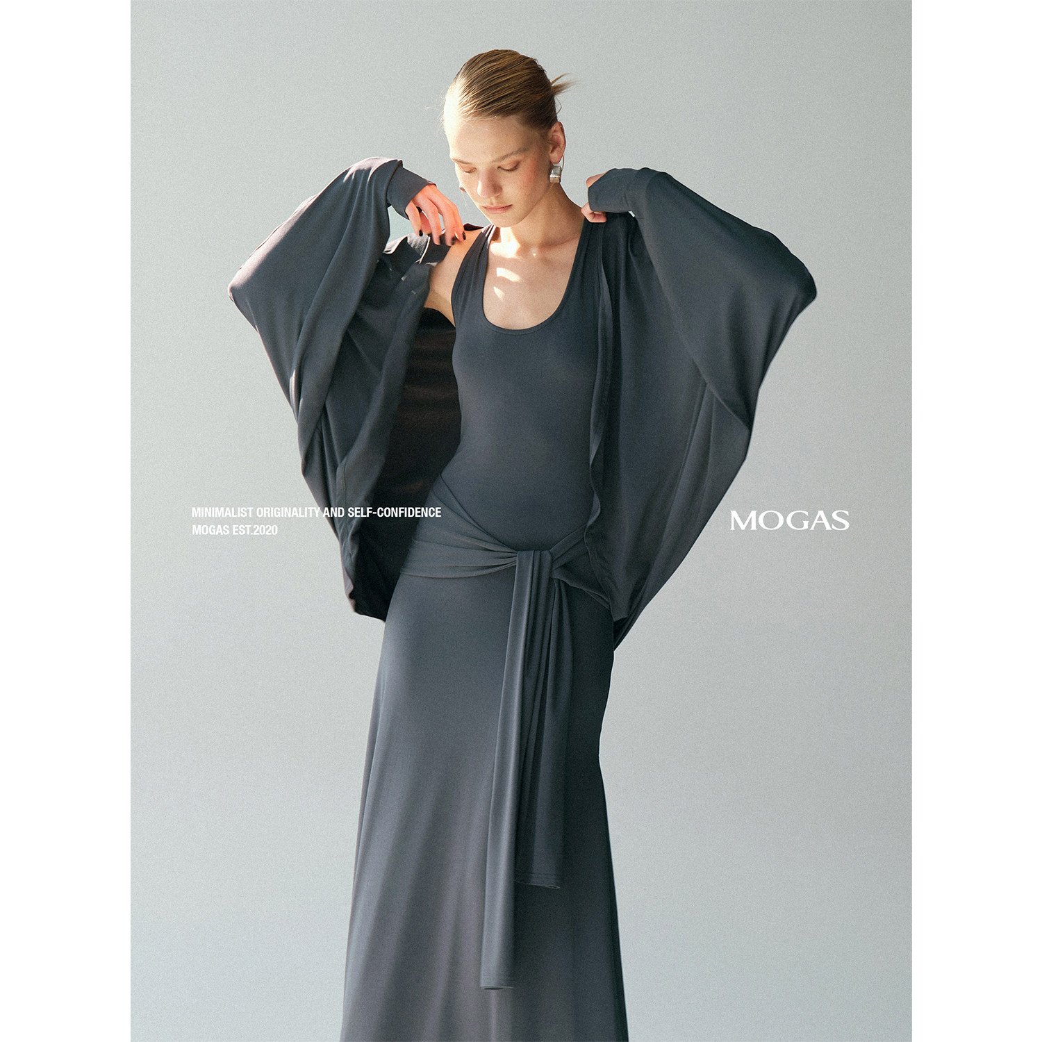 📚 Mogas气质肯豆套装 莫代尔混纺蝙蝠袖外套U领挂脖系带吊带连衣裙