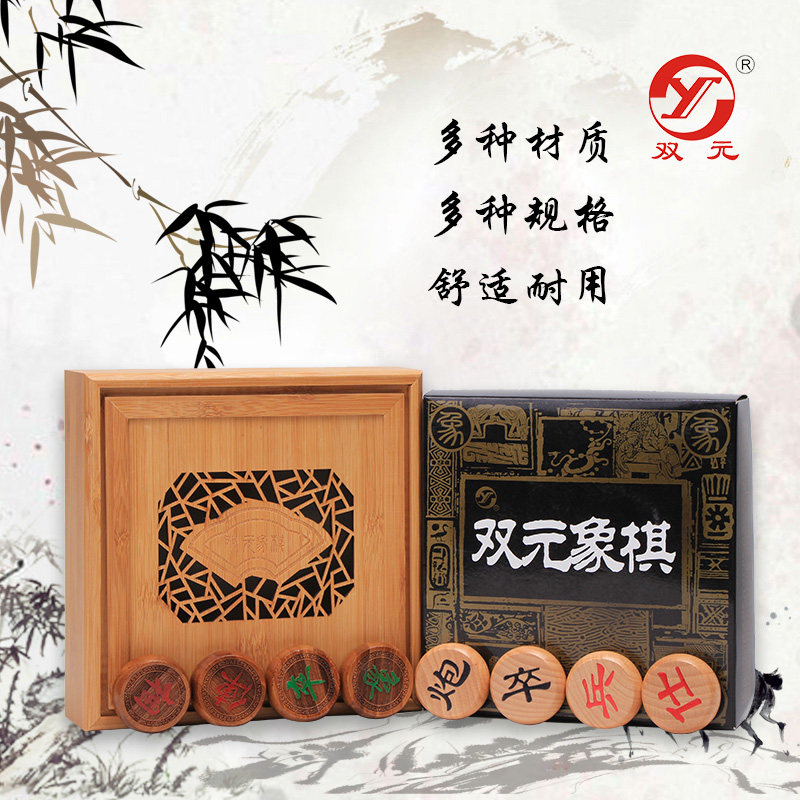 📚 双元 中国象棋实木成人大号家用套装儿童学生榉木棋子仿皮棋盘