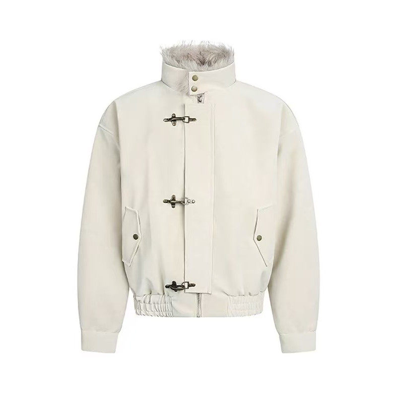 📚 设计感飞机扣哈林顿立领棉服男cleanfit短款冬季座山雕毛领外套潮