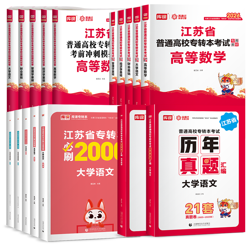 📚 库课2026江苏省专转本高数教材必刷真题模拟试卷语文高等数学机械工程管理类计算机文史财经电子信息类专升本普通高校统招库克2025