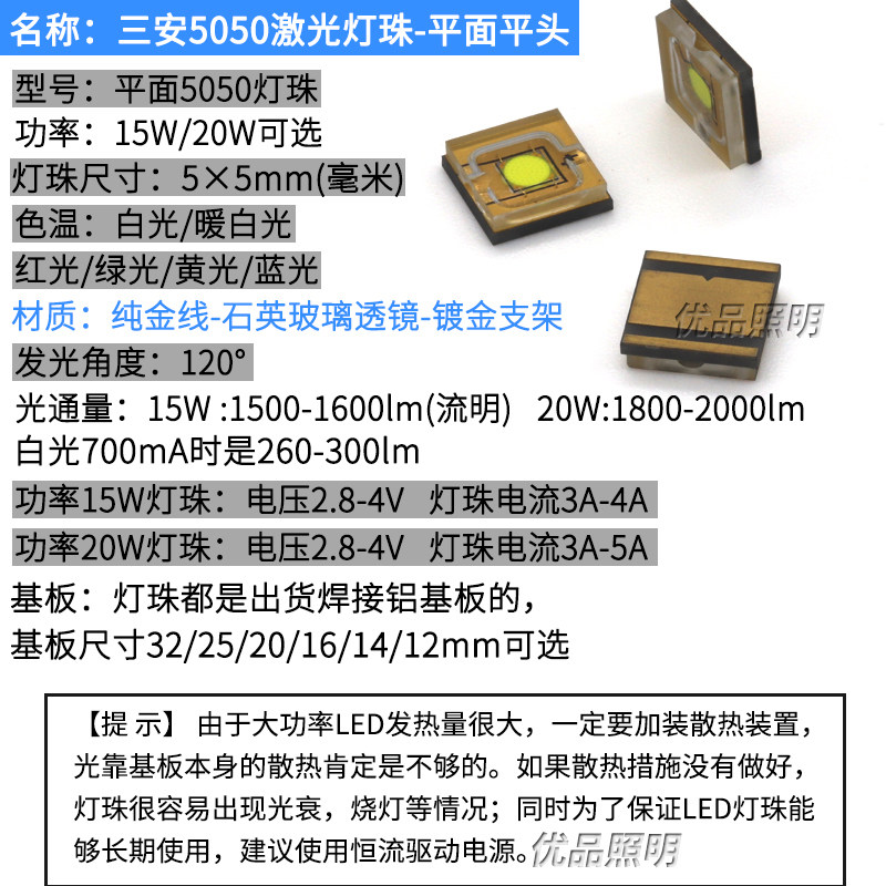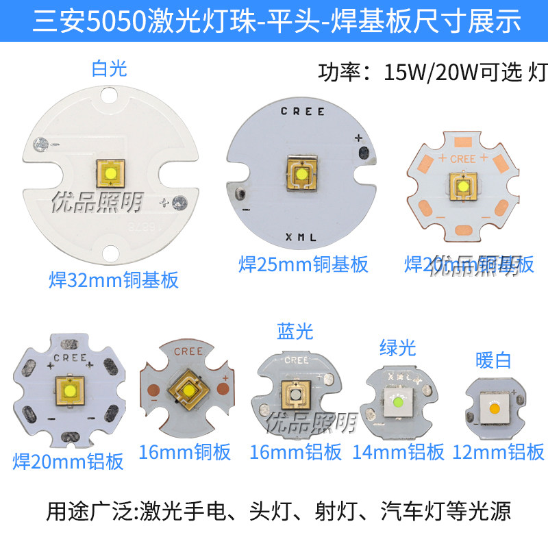 📚 平面XHP50 20W激光灯珠平头led强光手电筒射灯泡5050白光蓝光红光