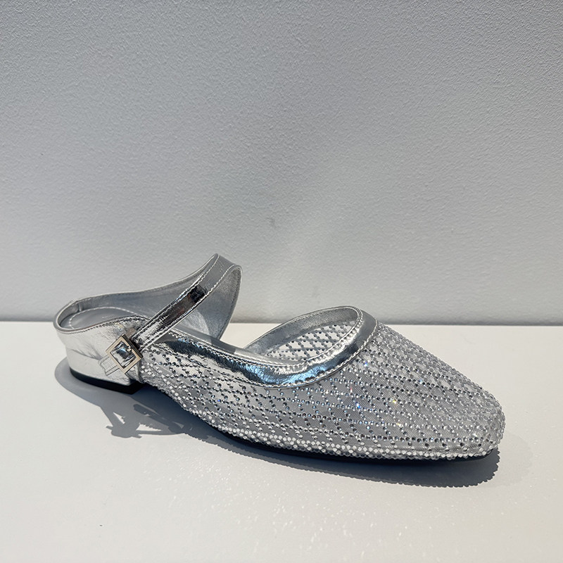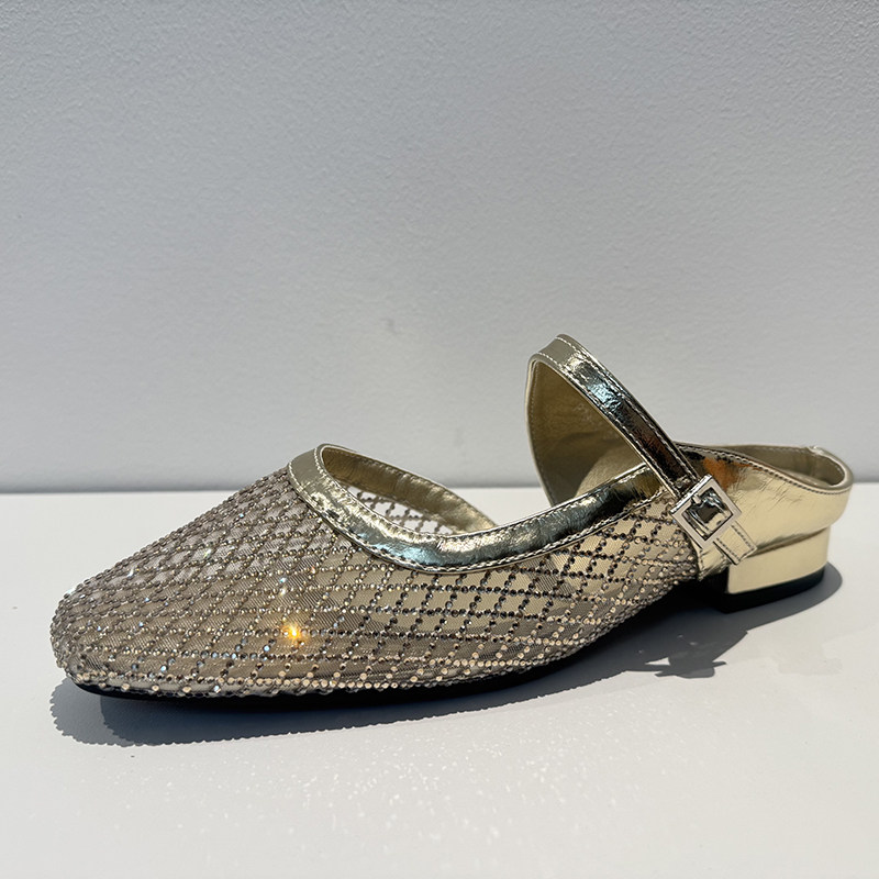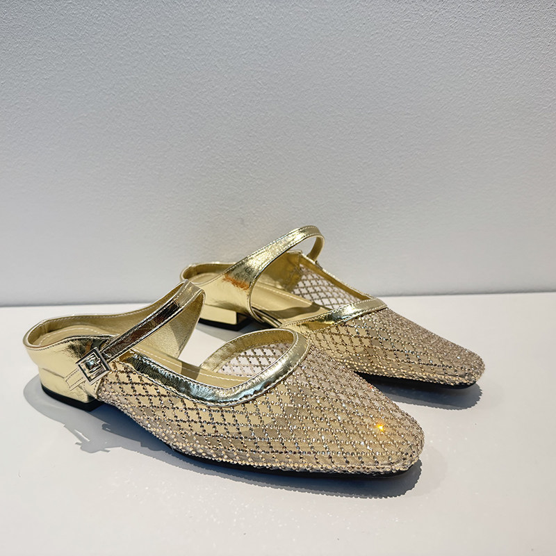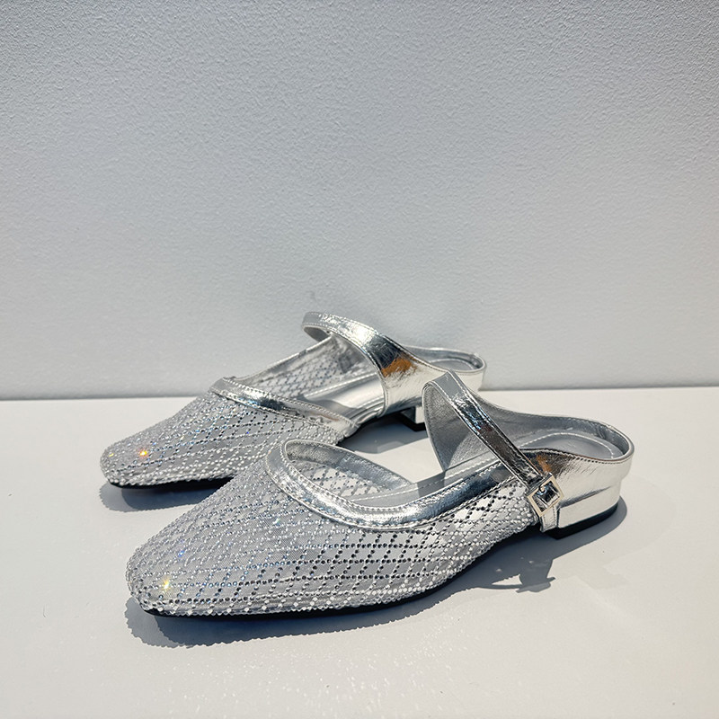 📚 【呼呼严选】精致的女鞋平跟半拖鞋女水钻网面透气凉鞋