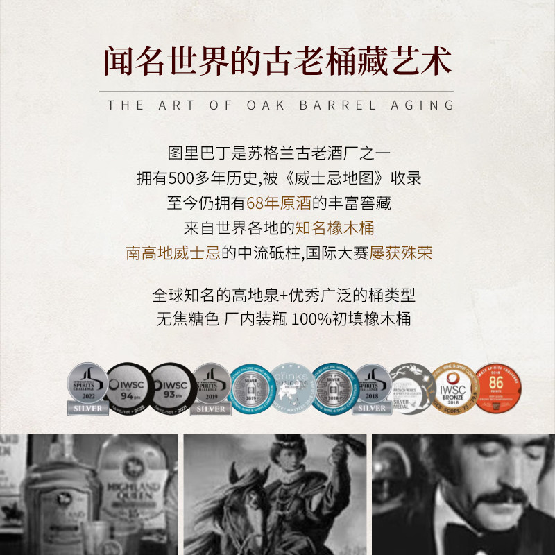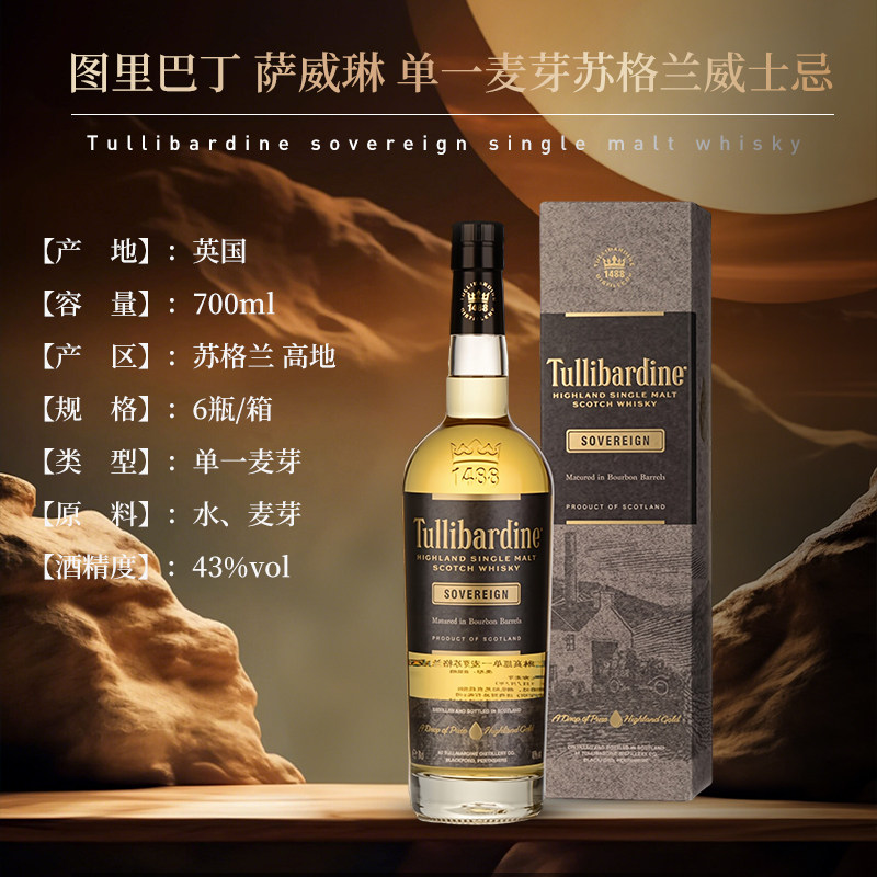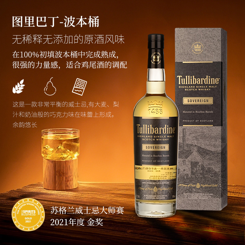 📚 苏格兰进口威士忌英国图里巴丁萨威琳单一麦芽桶强波本雪莉桶洋酒