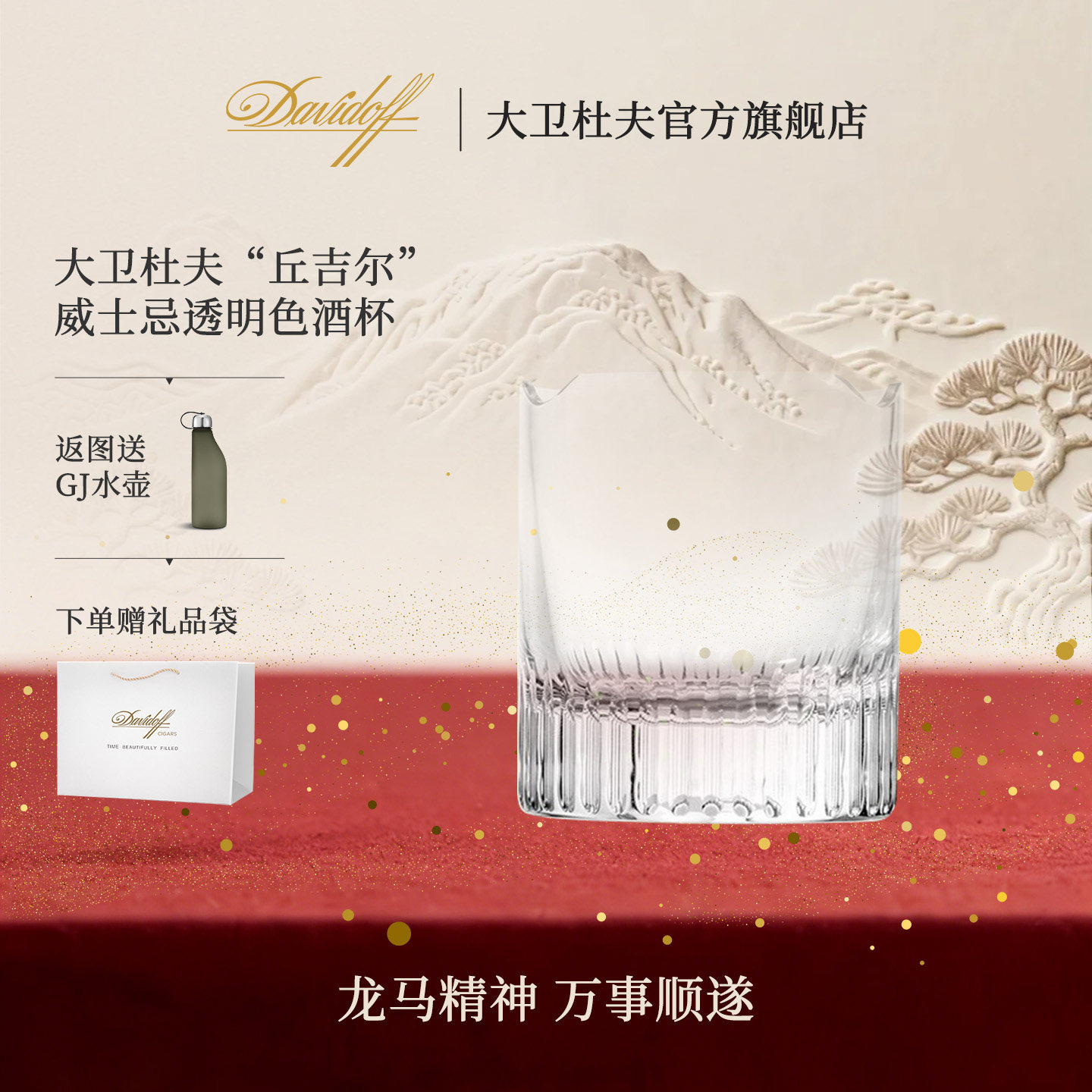 📚 Davidoff/大卫杜夫 雪茄杯威士忌水晶玻璃酒杯套装丘吉尔送男友礼