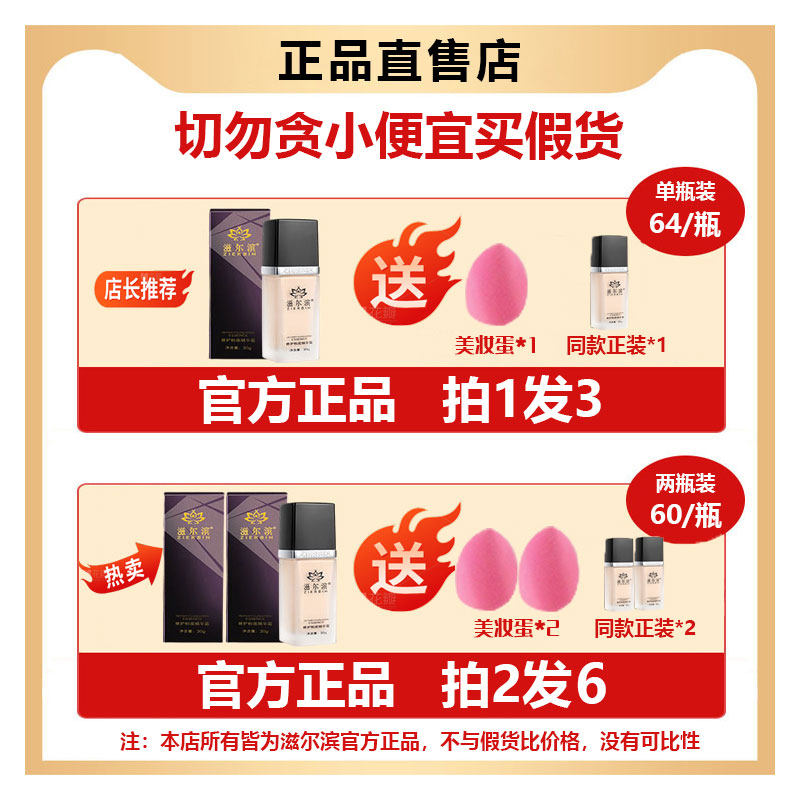 📚 【买一送二】正品滋尔滨粉底液官方旗舰店修护粉底精华霜控油