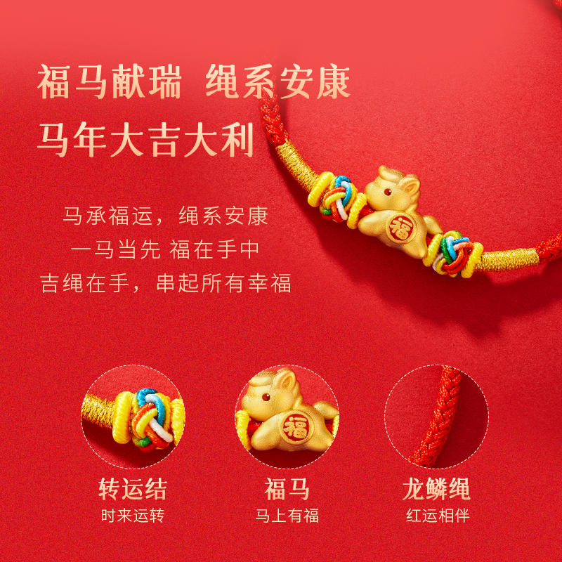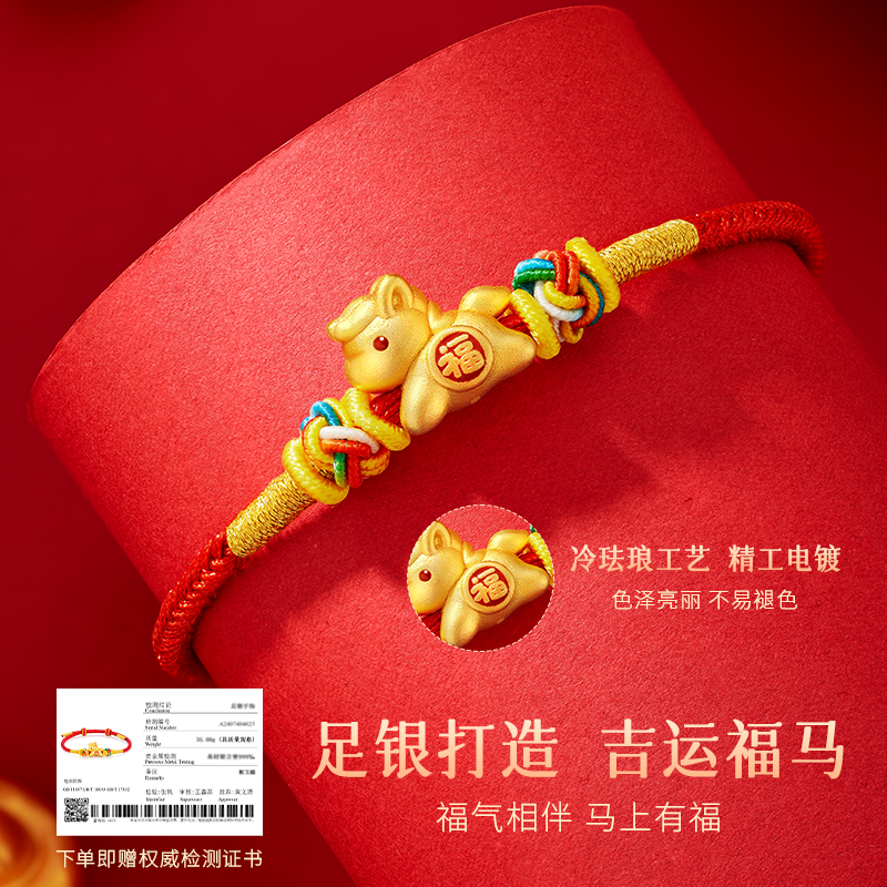 📚 中国黄金央创属马年本命年红手绳手链儿童本命年女士礼物新年足银