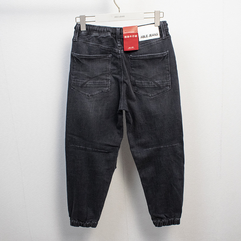 📚 帅气秋冬黑牛酷跑牛仔裤ablejeans新款男士宽松束口裤潮流休闲裤