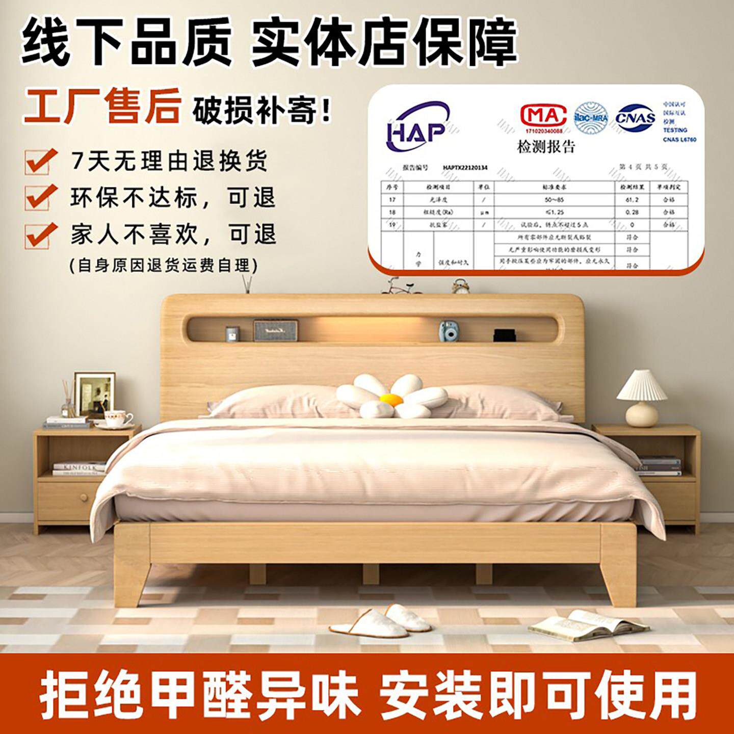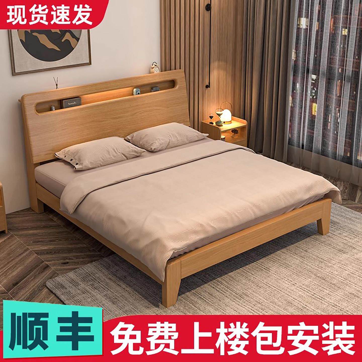 📚 1米5的床带储物实木床简约现代双人床主卧出租房家用单人床架现代