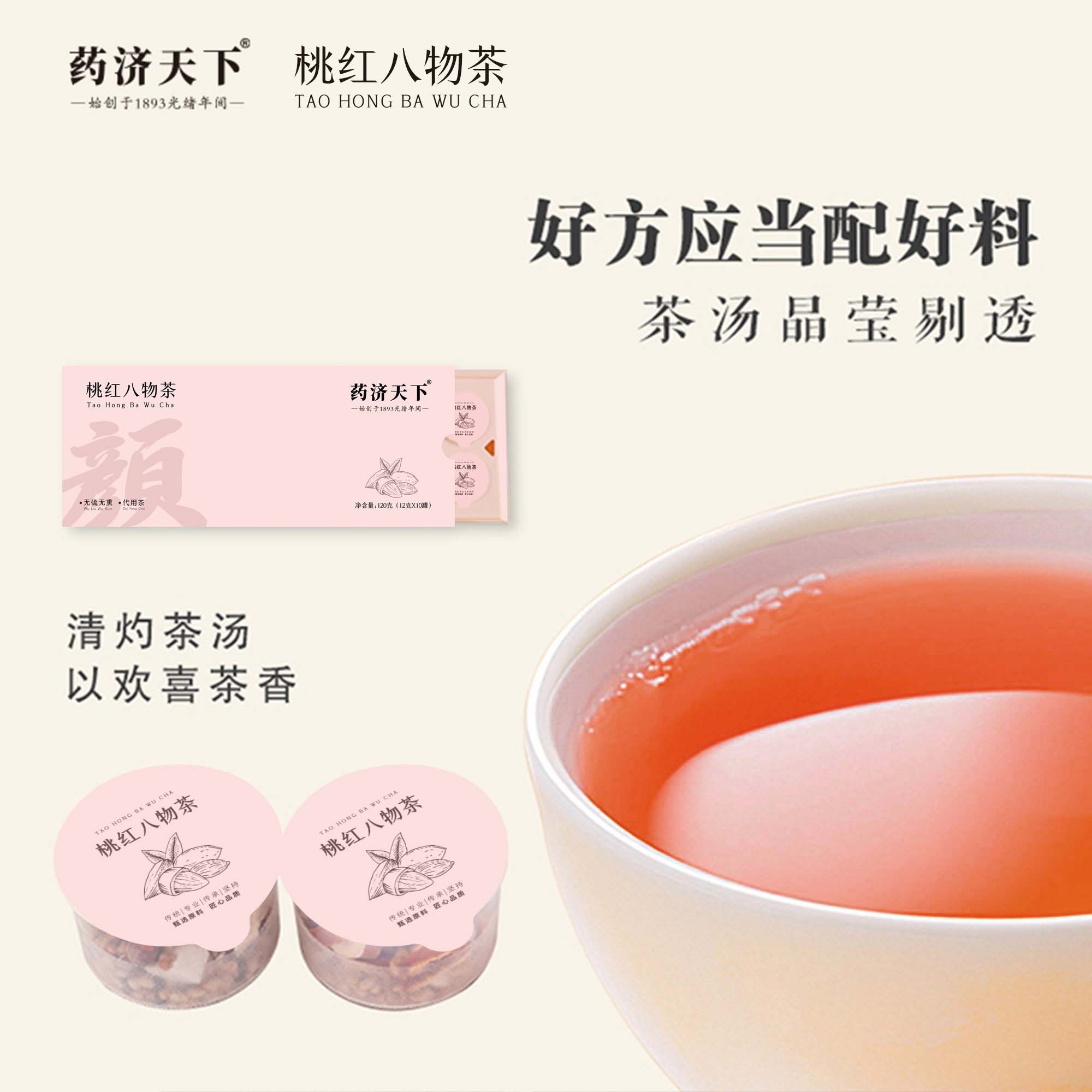📚 桃红八物茶红参桂圆地黄桑葚红枣桃仁玫瑰花罗汉果四物汤养生茶
